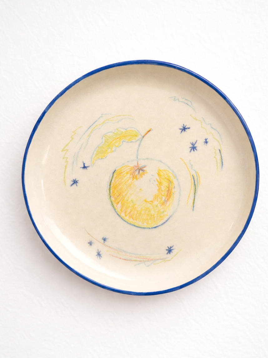 Тарелка ручной работы "Яблоко на блюдце с голубой каемочкой" от бренда Yellowscoop станет отличным подарком на любой праздник!