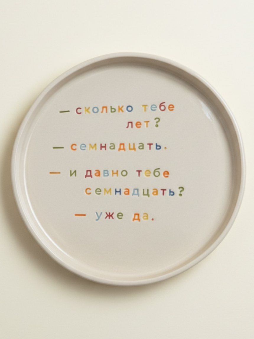 Тарелка ручной работы с цитатой из фильма Сумерки "Сколько тебе лет?" от бренда Yellowscoop станет отличным подарком на любой праздник!