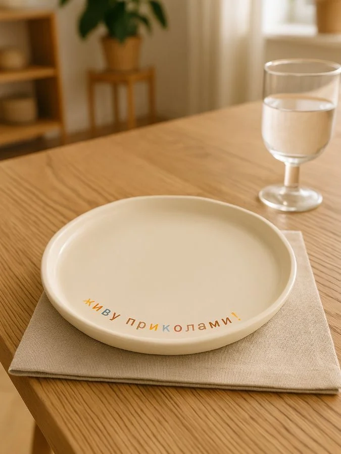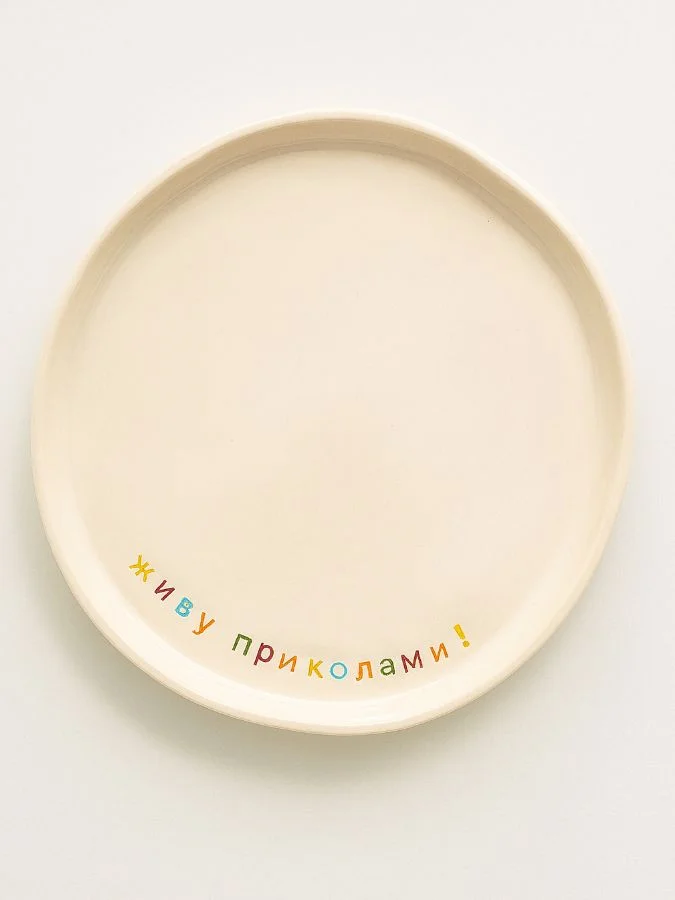 Тарелка ручной работы "Живу приколами" от бренда Yellowscoop станет отличным подарком на любой праздник!