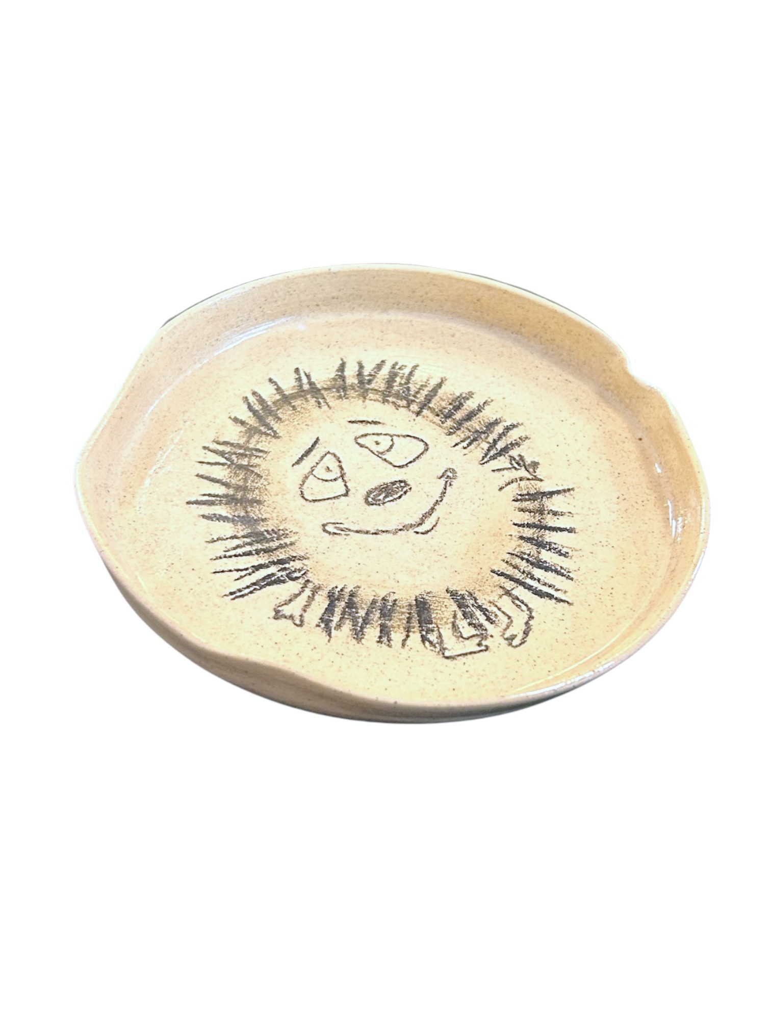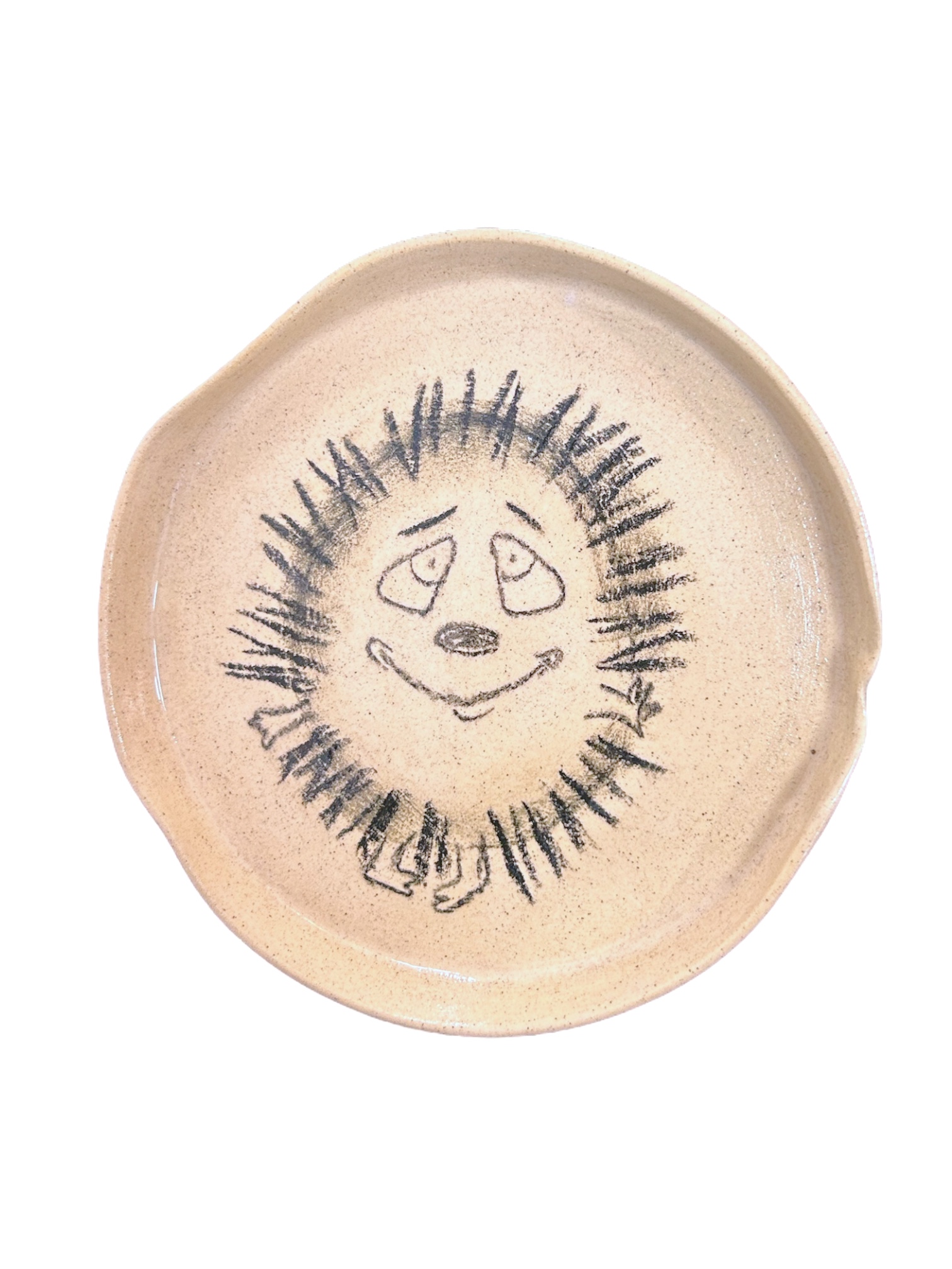 Керамическая тарелка с оригинальным дизайном — изображением тревожного ежа.