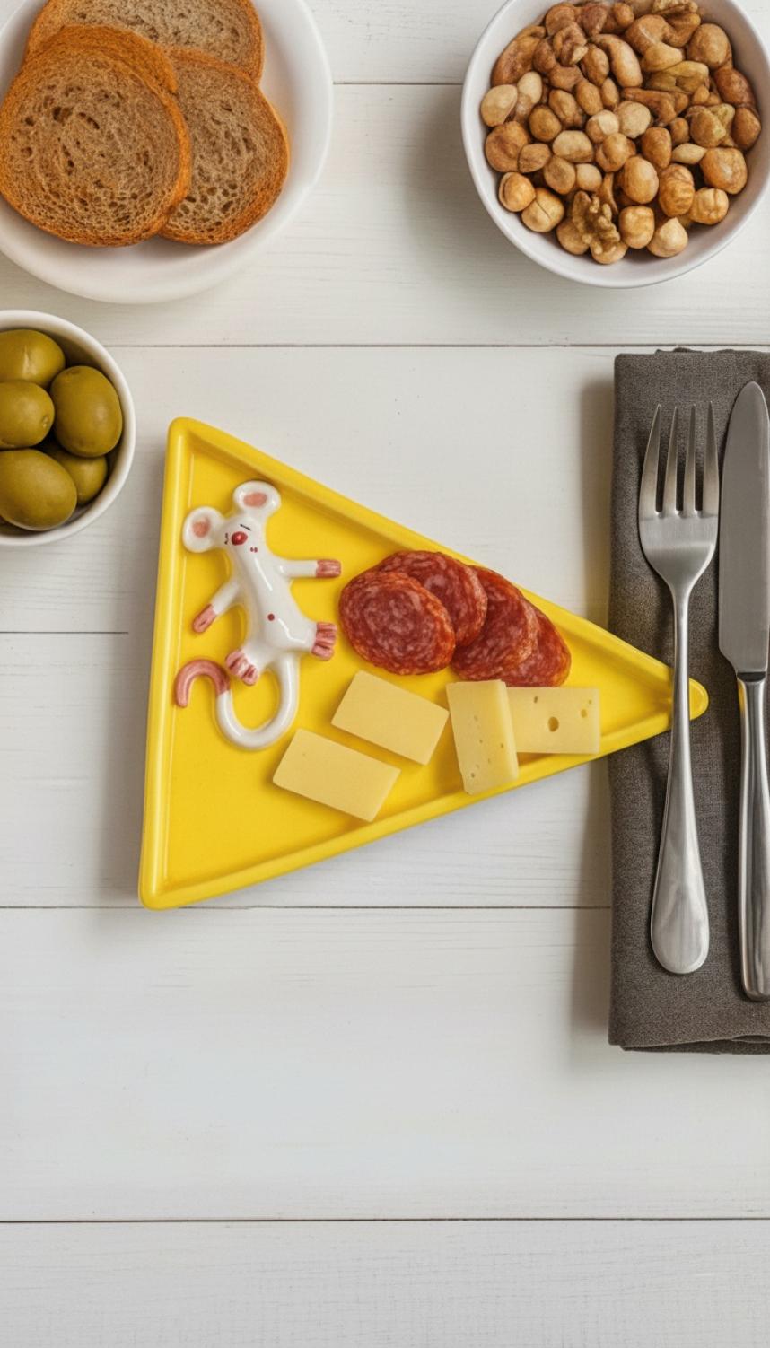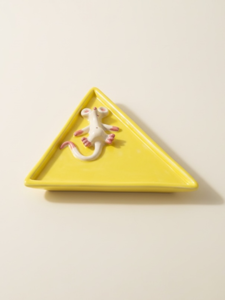 Треугольная тарелка ручной работы «Мышка», желтая, керамика