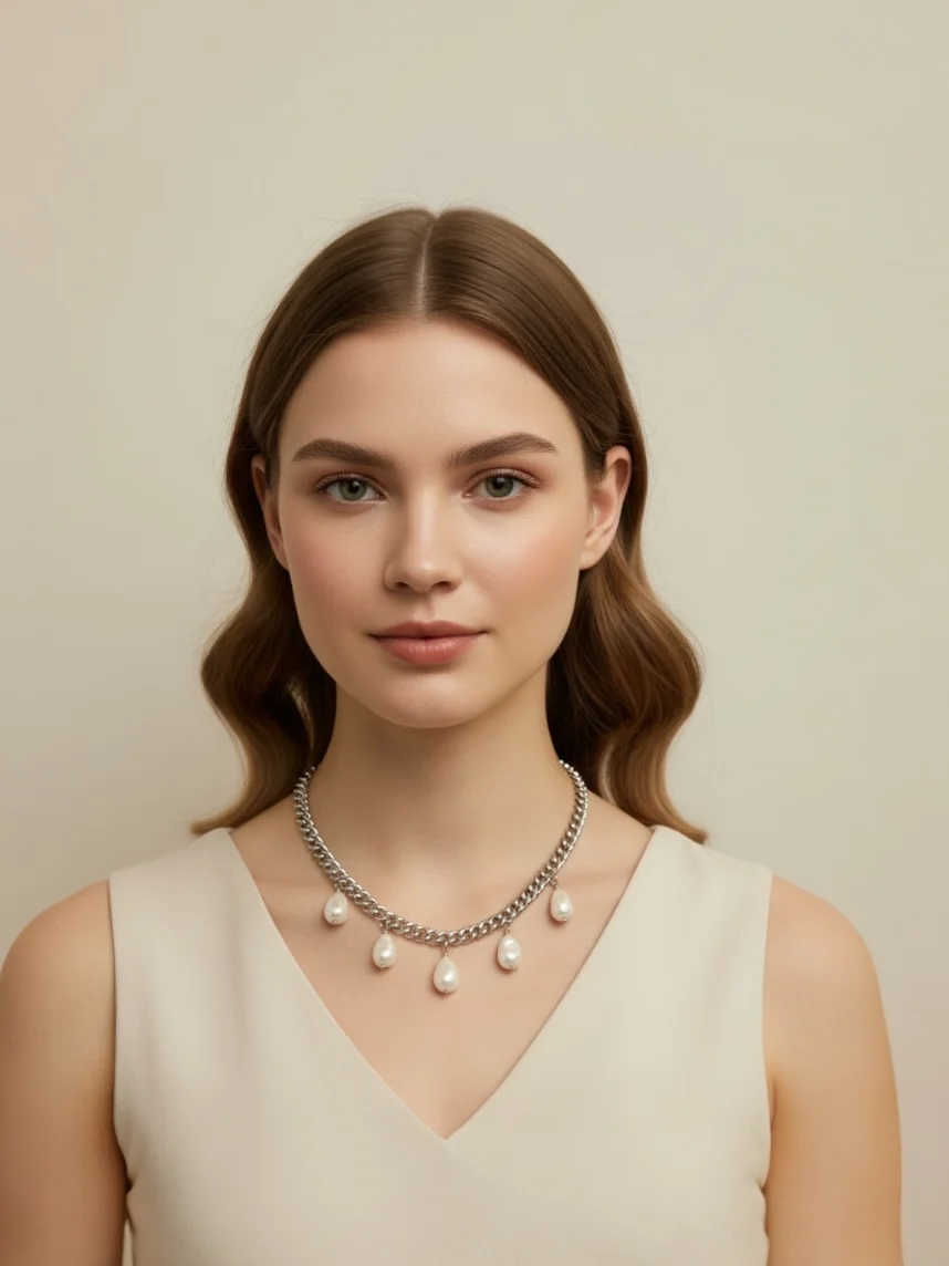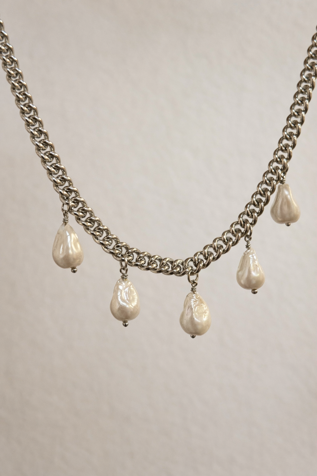 Цепь с гематитом и подвеской из жемчуга «Капли» Migette — изящное украшение, которое подчеркнет вашу индивидуальность.