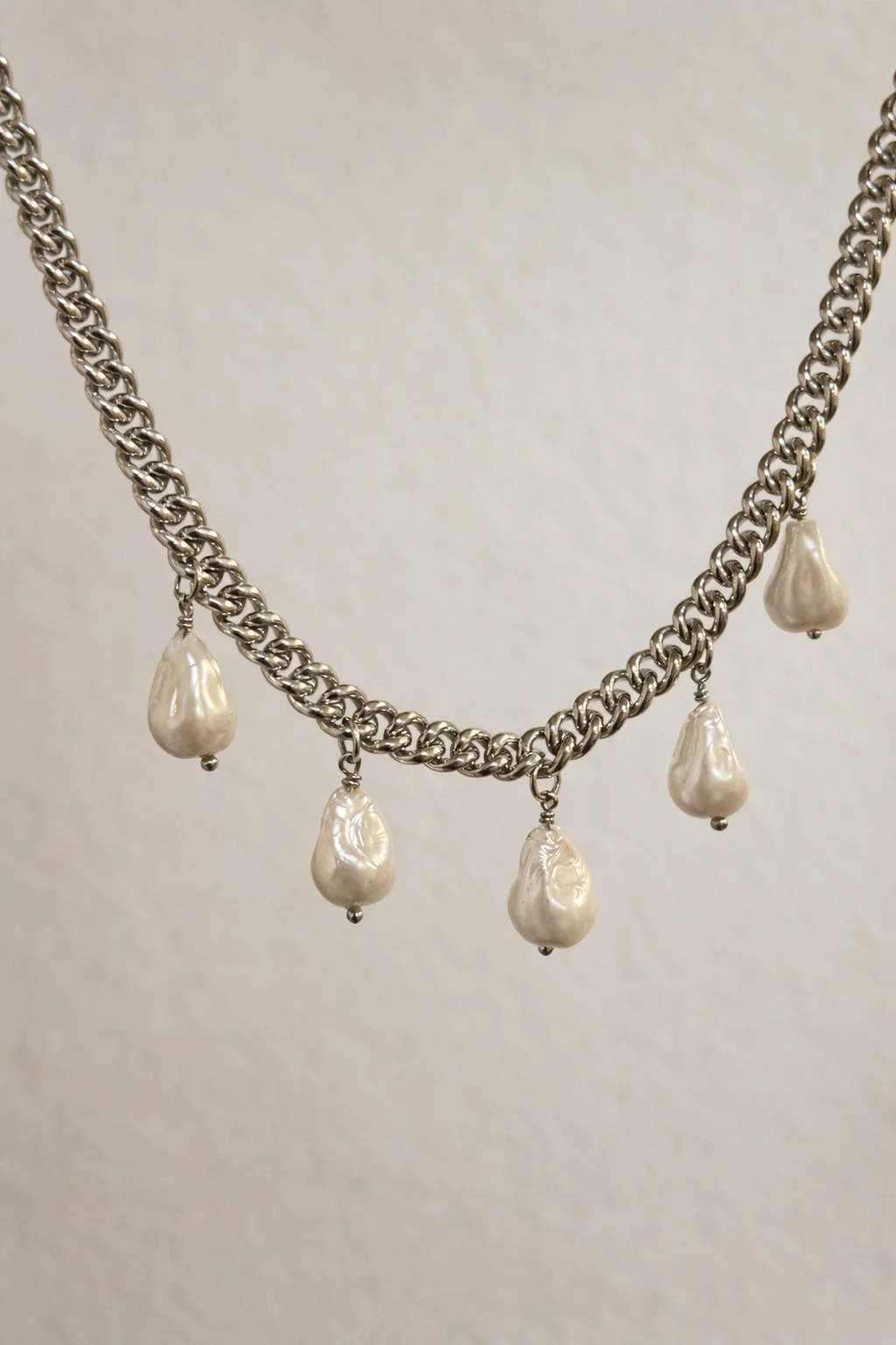 Цепь Мигетт «Капли», с гематитом и подвеской из жемчуга