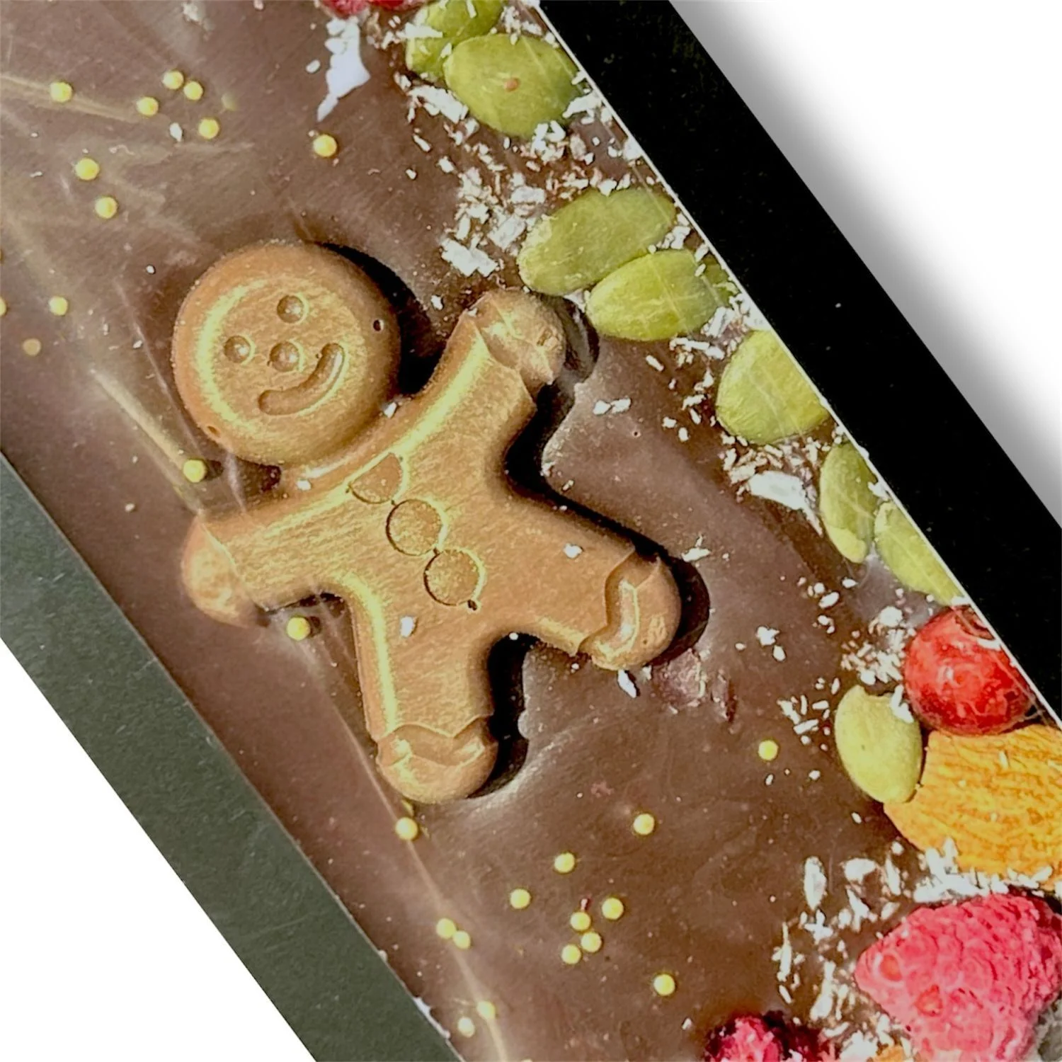 Тёмный шоколад "Пряничный человек" с малиной, миндалём и брусникой, 45 г