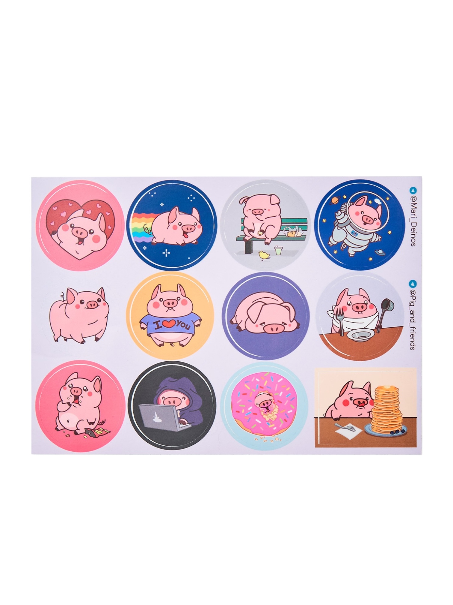 Виниловые стикеры «Pig and friends / Кругляшки», А5