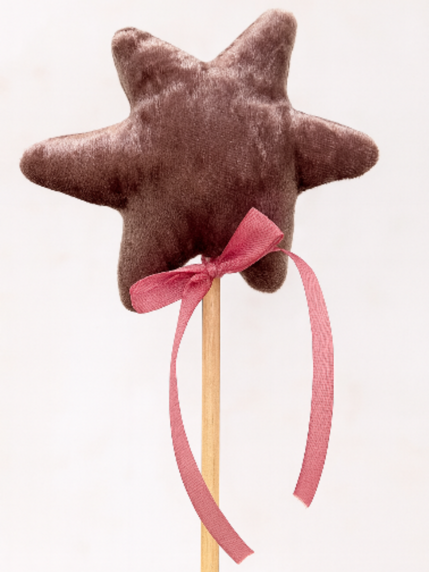 Звезда имеет ассиметричную форму, поэтому каждая палочка уникальна. Внутри мягкой звездочки спрятаны бубенцы, благодаря чему каждый взмах волшебной палочки сопровождается приятным звуком.