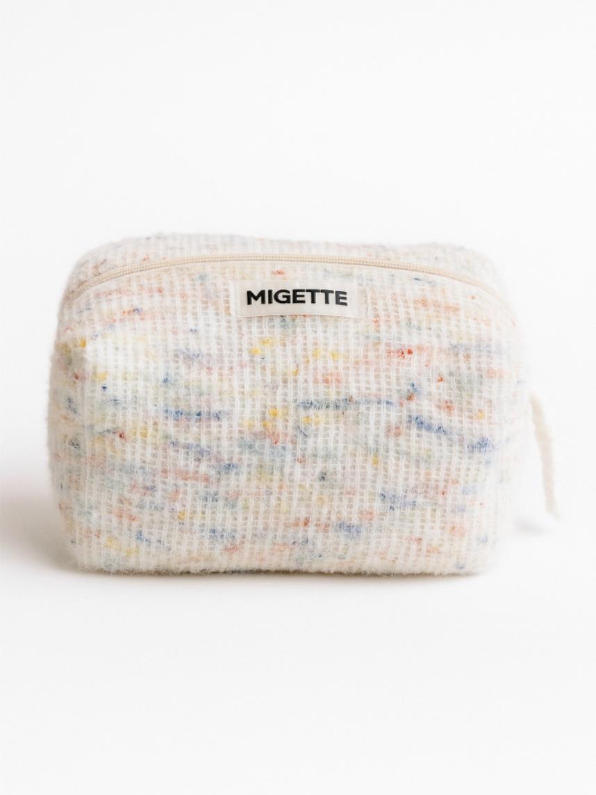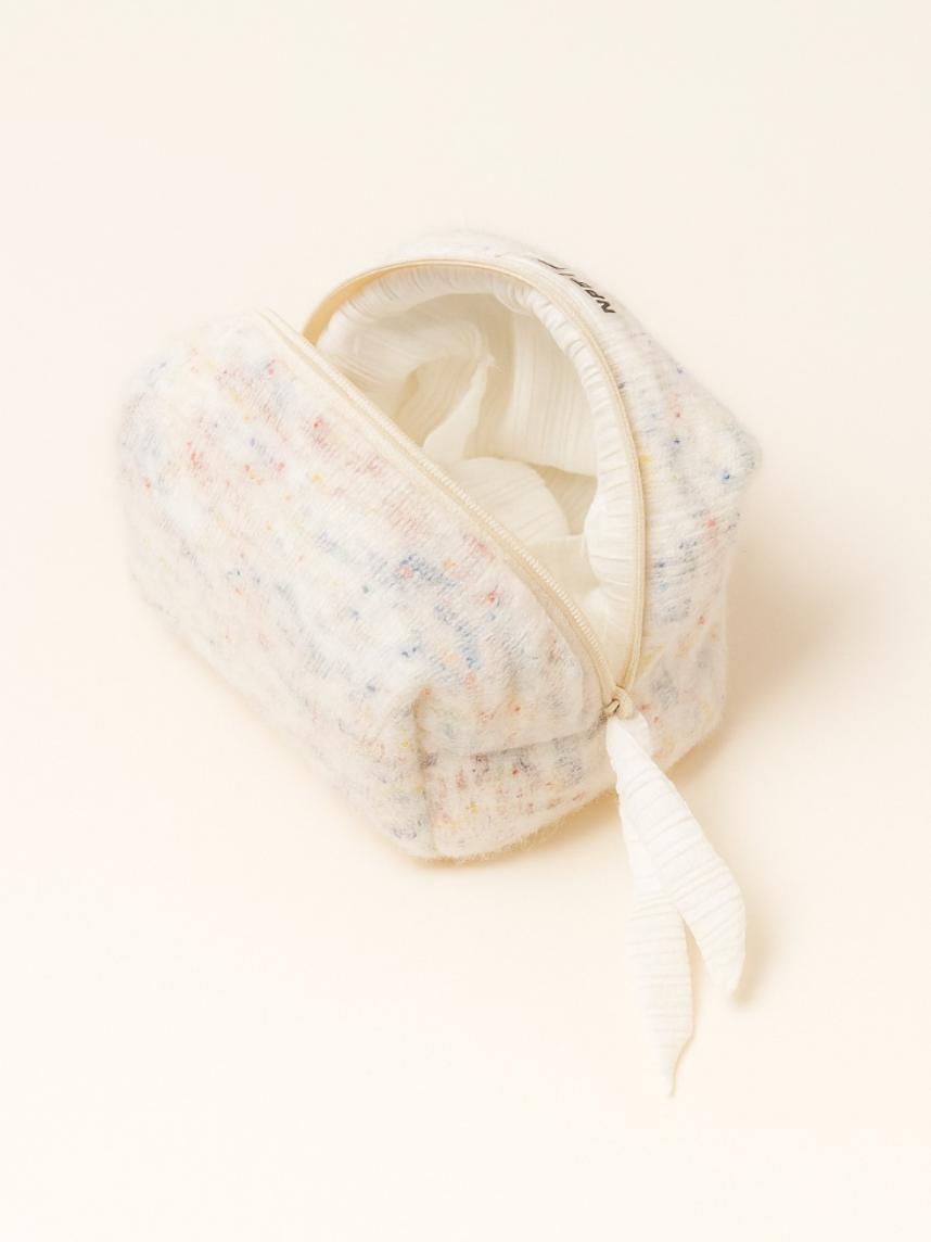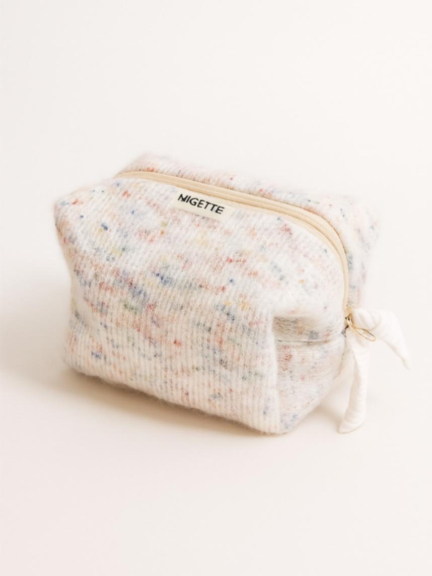 Вязаная косметичка ручной работы с карманом Migette, размер М, разноцветная с белым подкладом