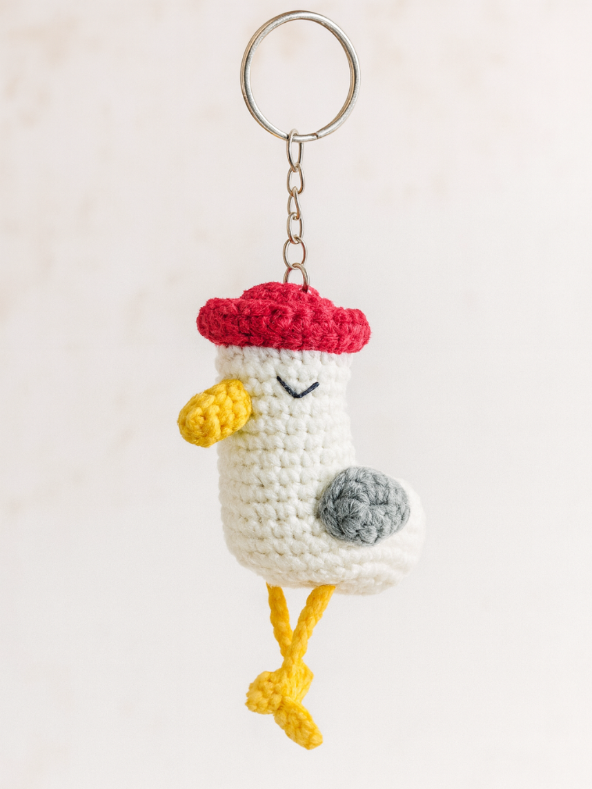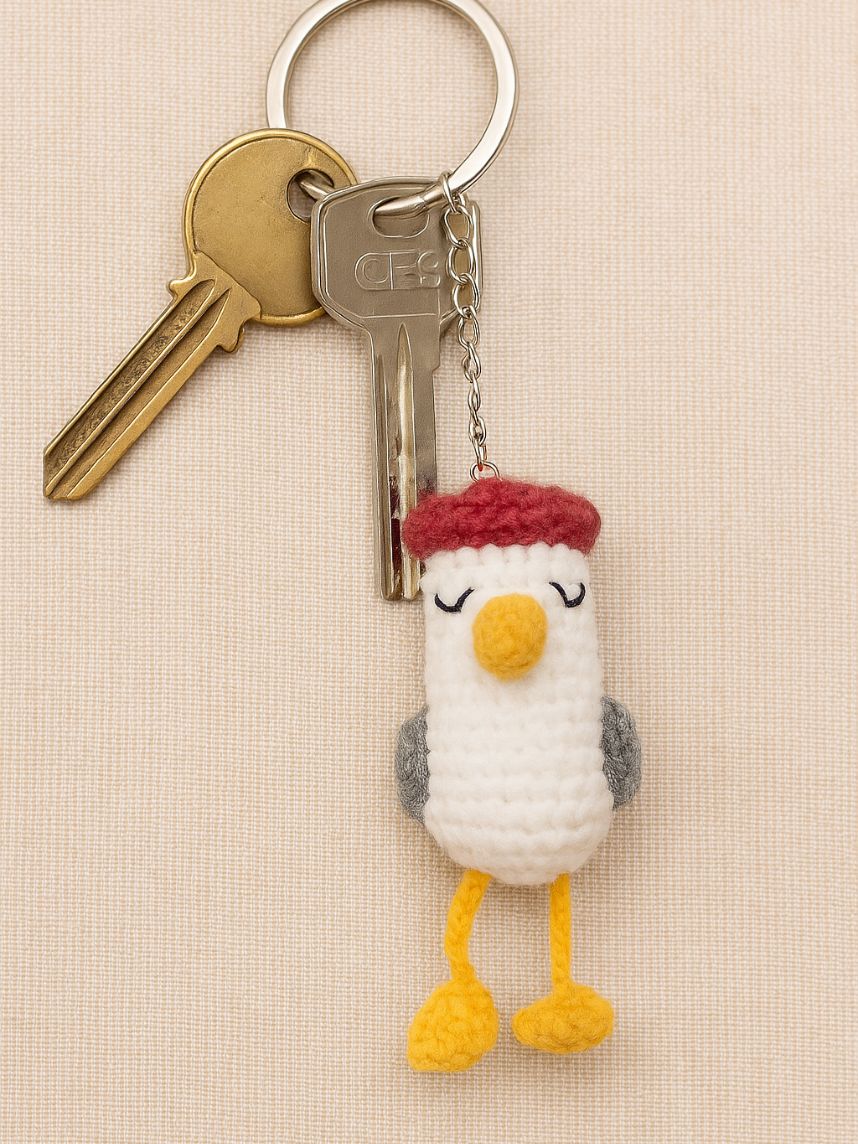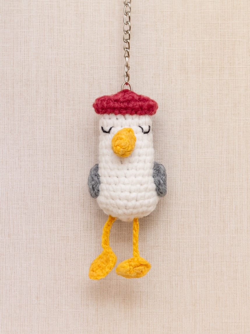 Очаровательный вязаный брелок в виде чайки мягкий и приятный на ощупь.
