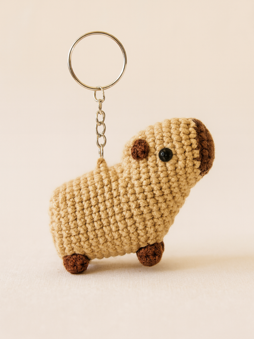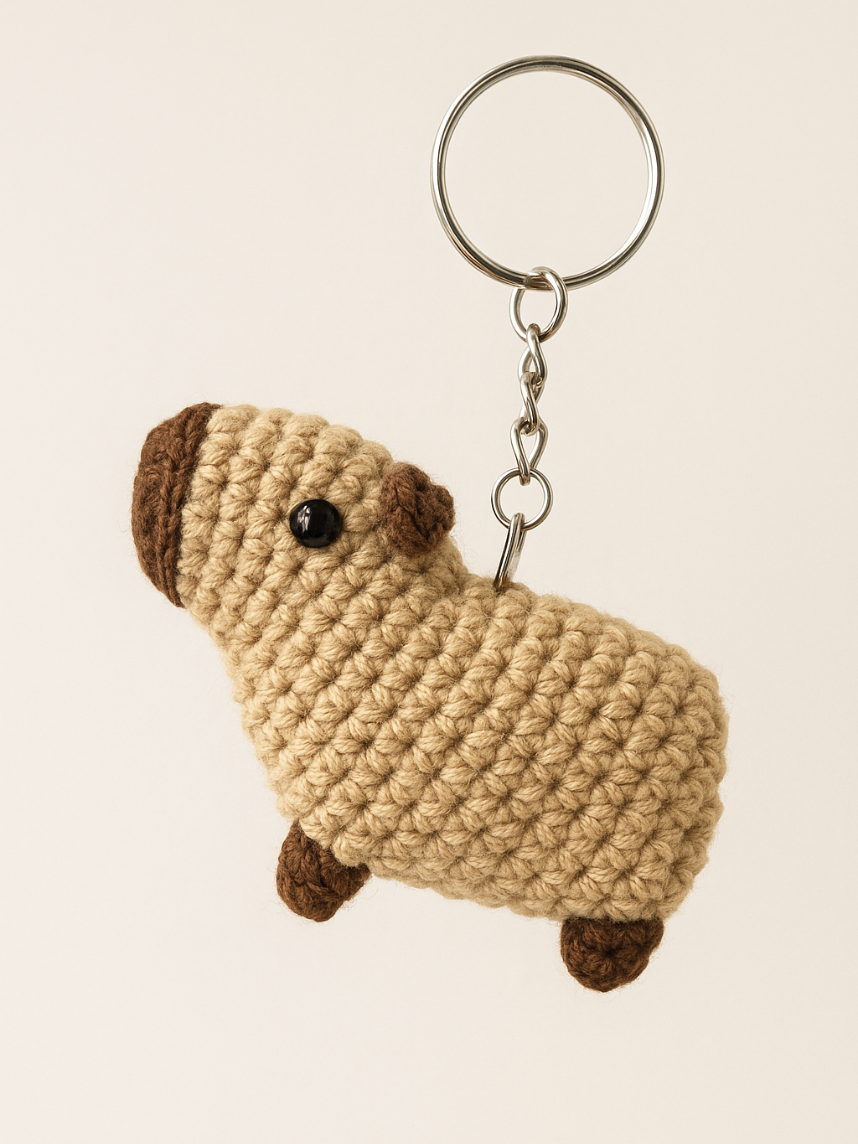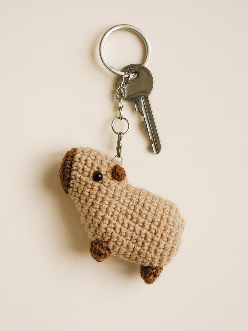 Очаровательный вязаный брелок в виде капибары мягкий и приятный на ощупь.