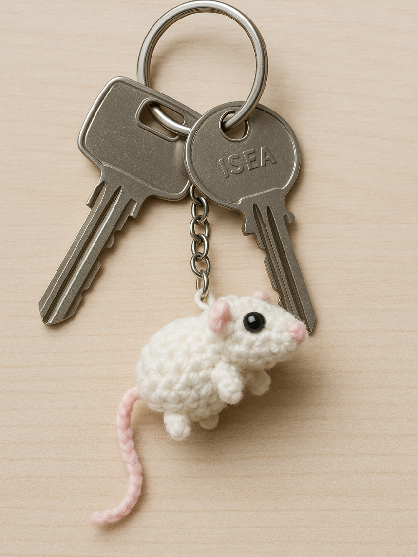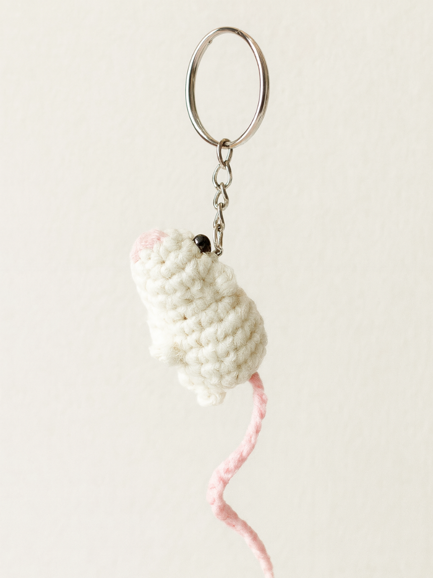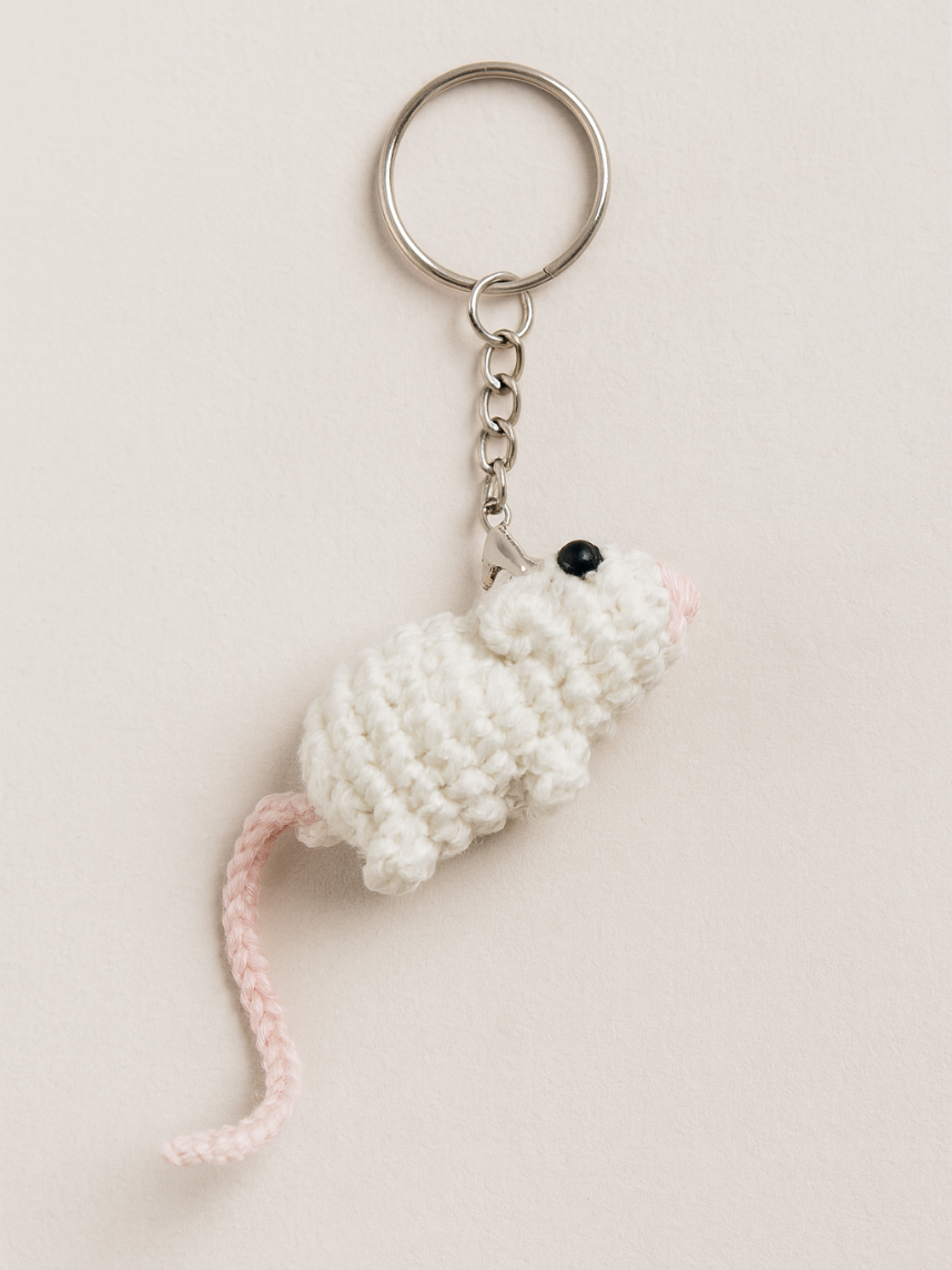 Очаровательный вязаный брелок в виде крысы мягкий и приятный на ощупь.