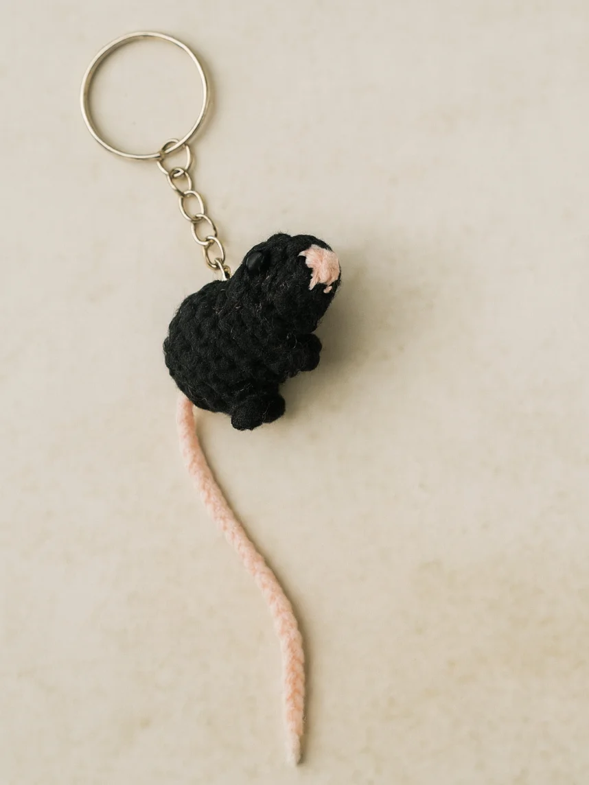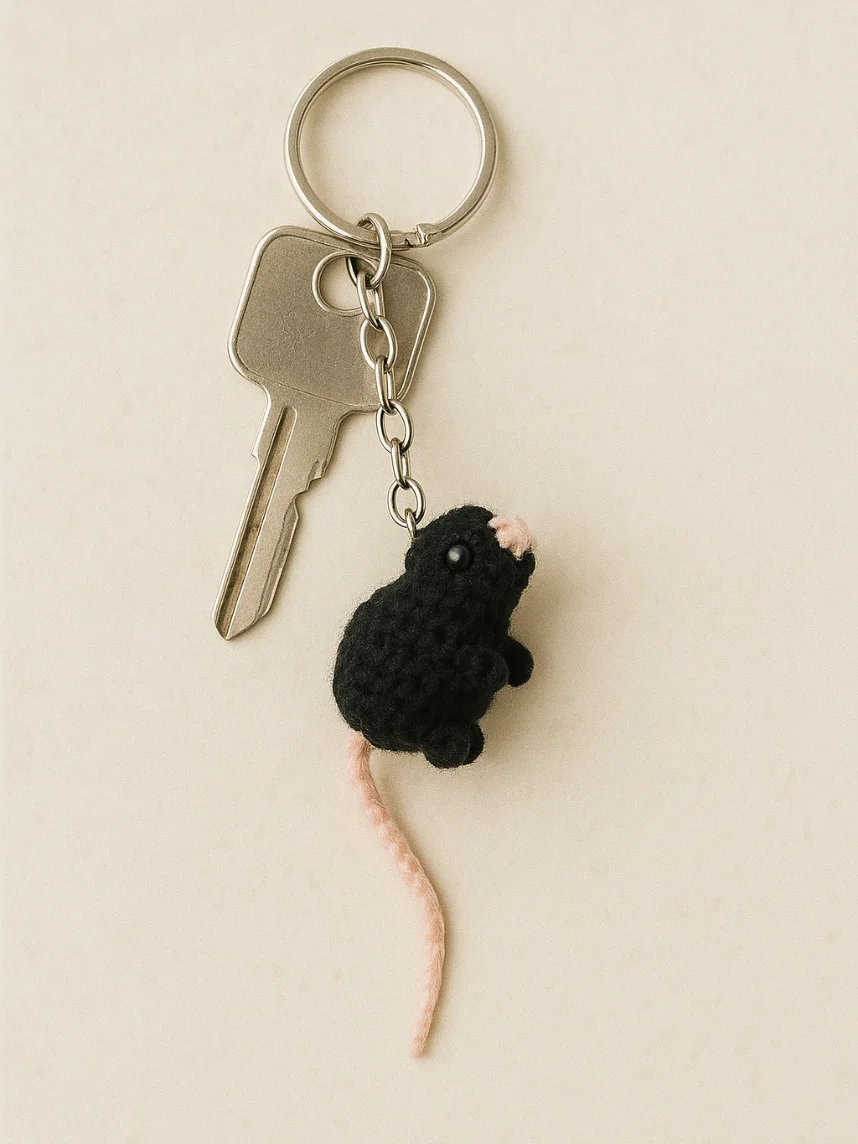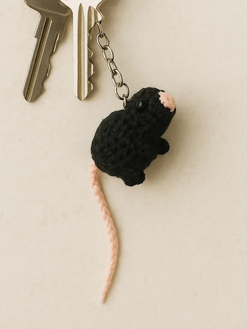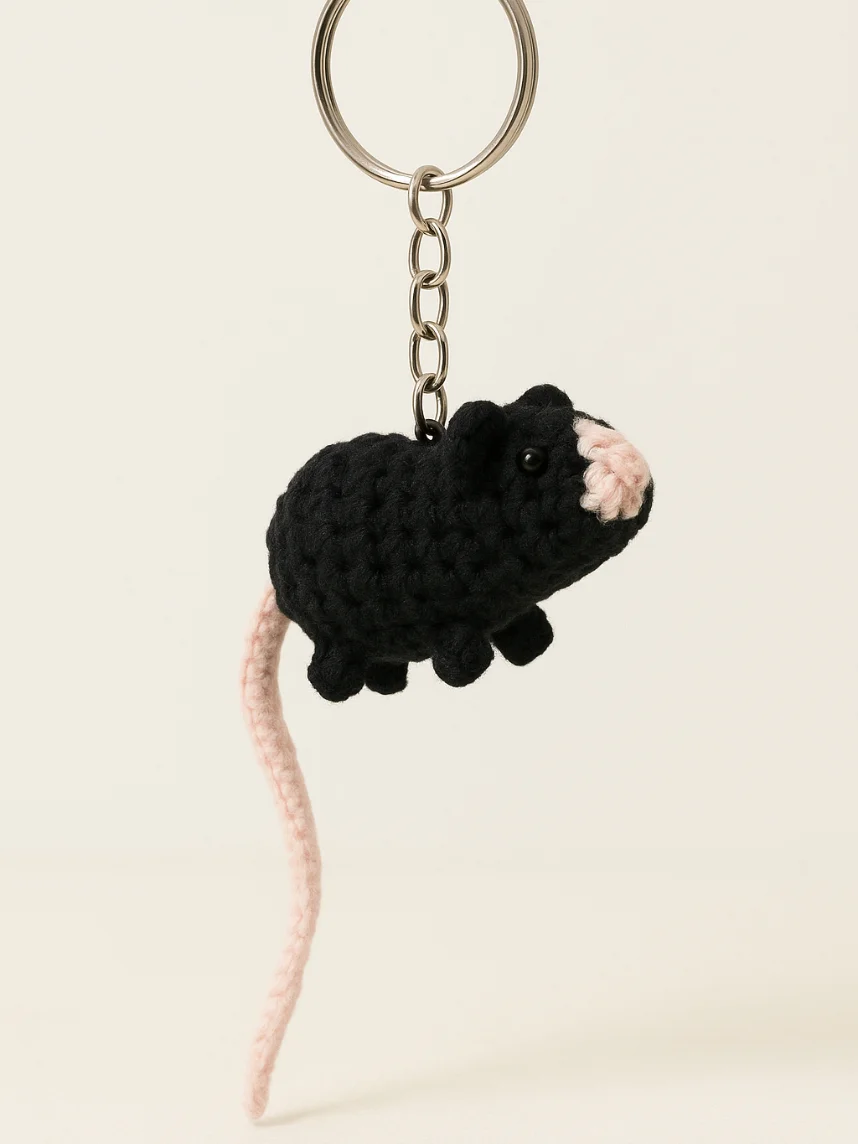 Очаровательный вязаный брелок в виде крысы мягкий и приятный на ощупь.