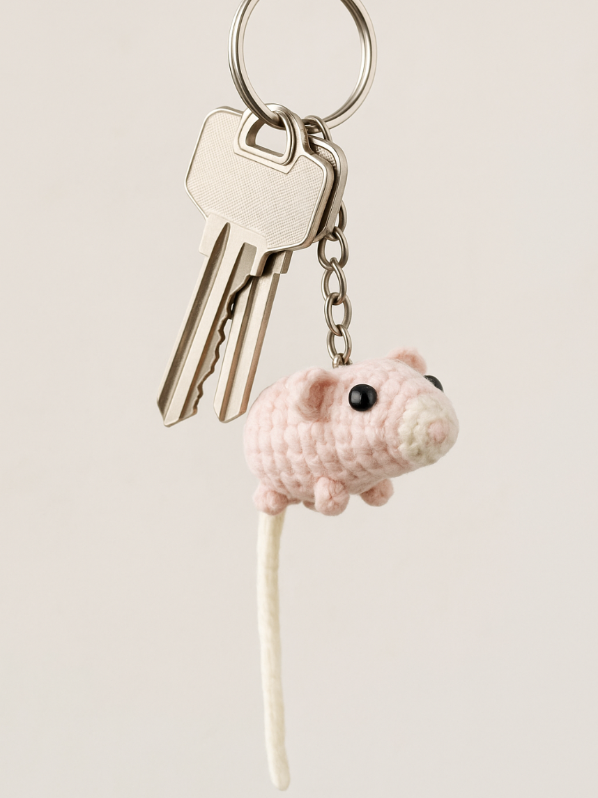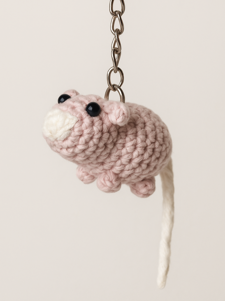 Вязаный брелок «Крыса», розовый