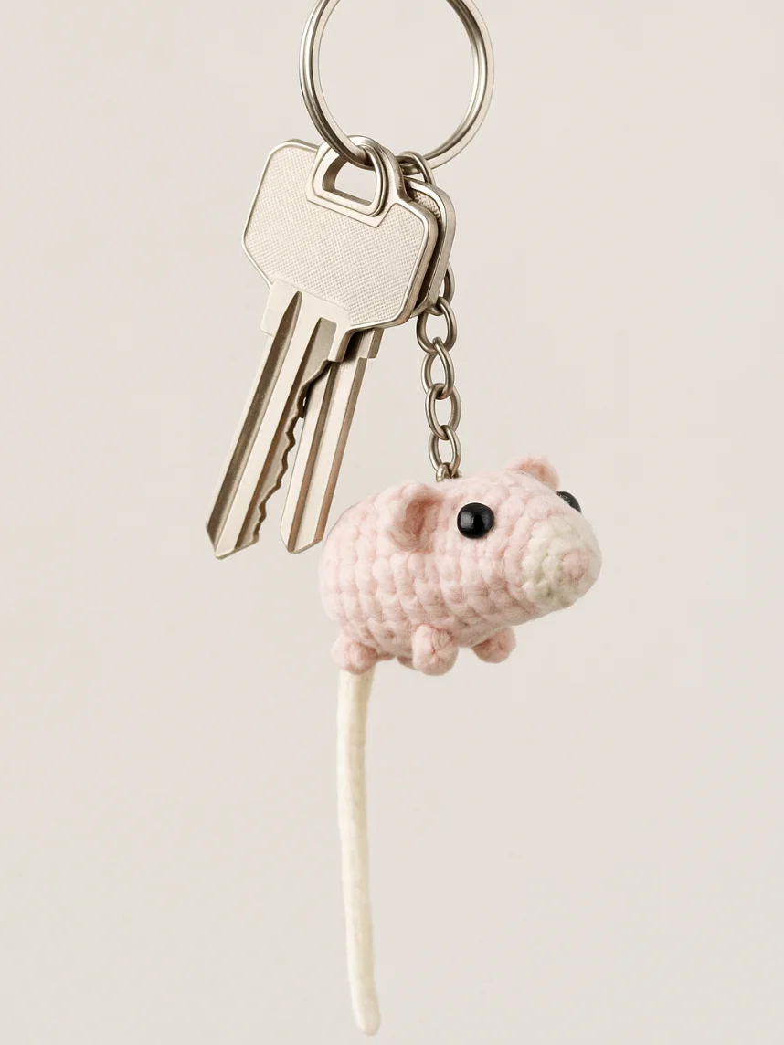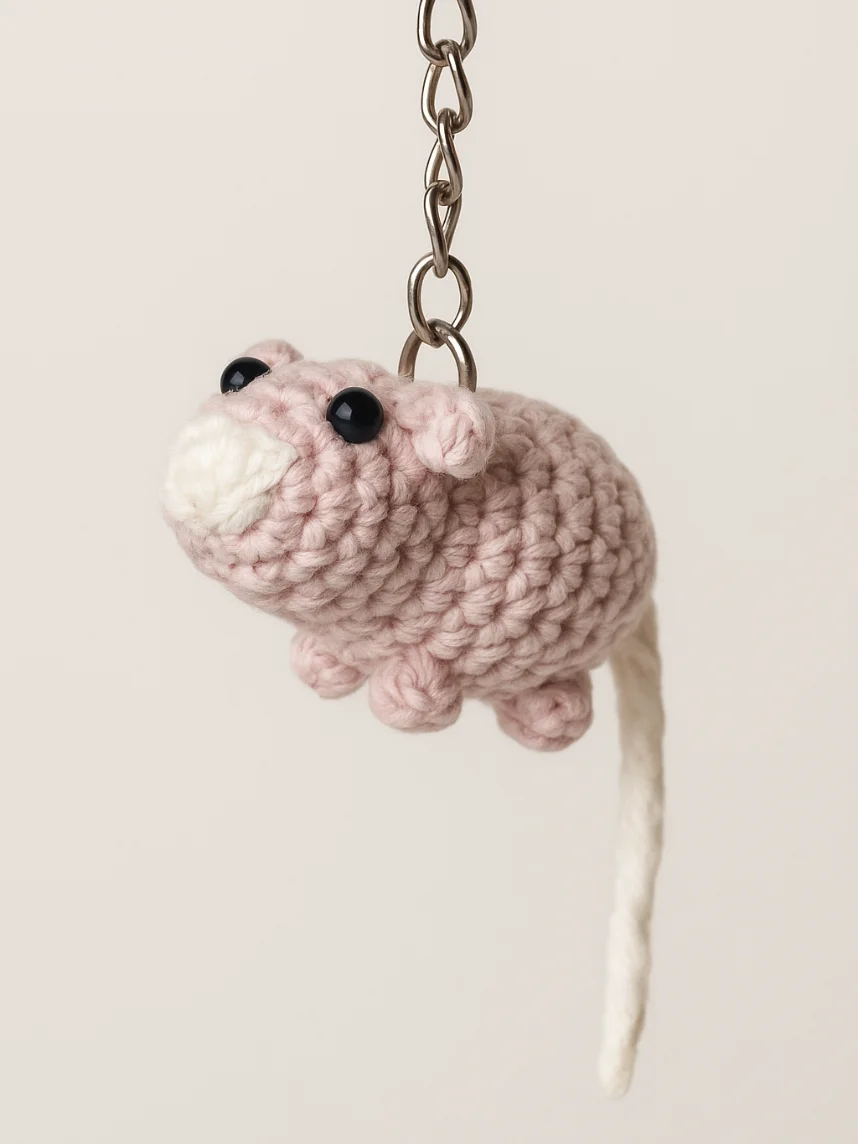 Очаровательный вязаный брелок в виде крысы мягкий и приятный на ощупь.