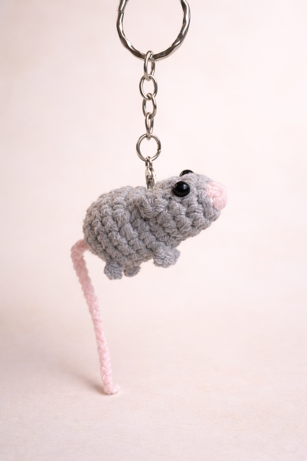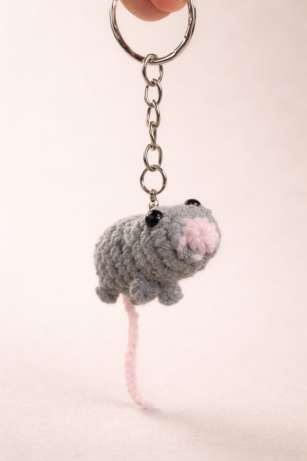 Очаровательный вязаный брелок в виде крысы мягкий и приятный на ощупь.