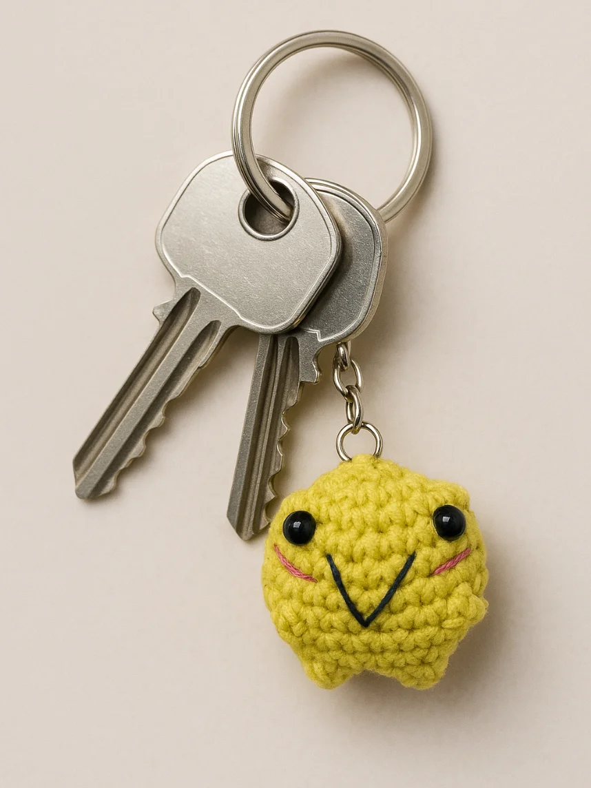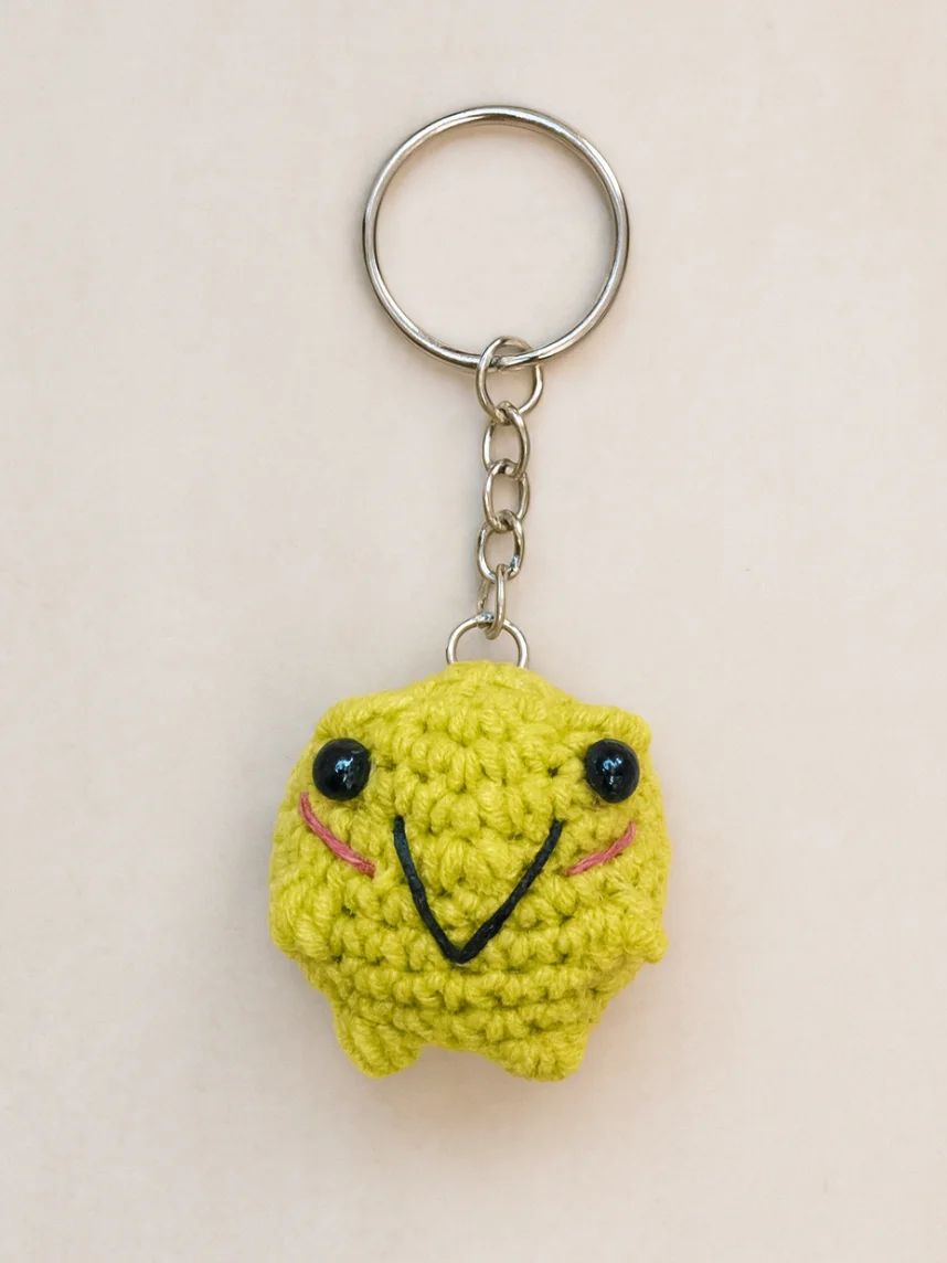 Очаровательный вязаный брелок в виде лягушки мягкий и приятный на ощупь.