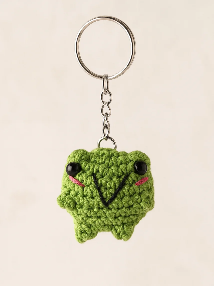 Очаровательный вязаный брелок в виде лягушки мягкий и приятный на ощупь.