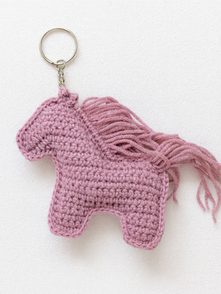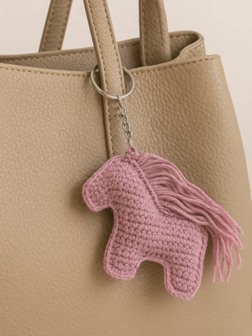 Вязаный брелок «Лошадка» — это милый и яркий аксессуар, выполненный вручную из мягкой пряжи.