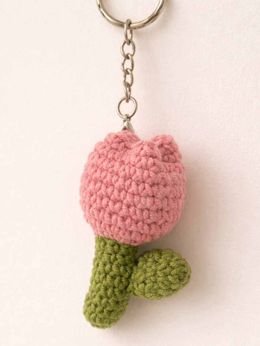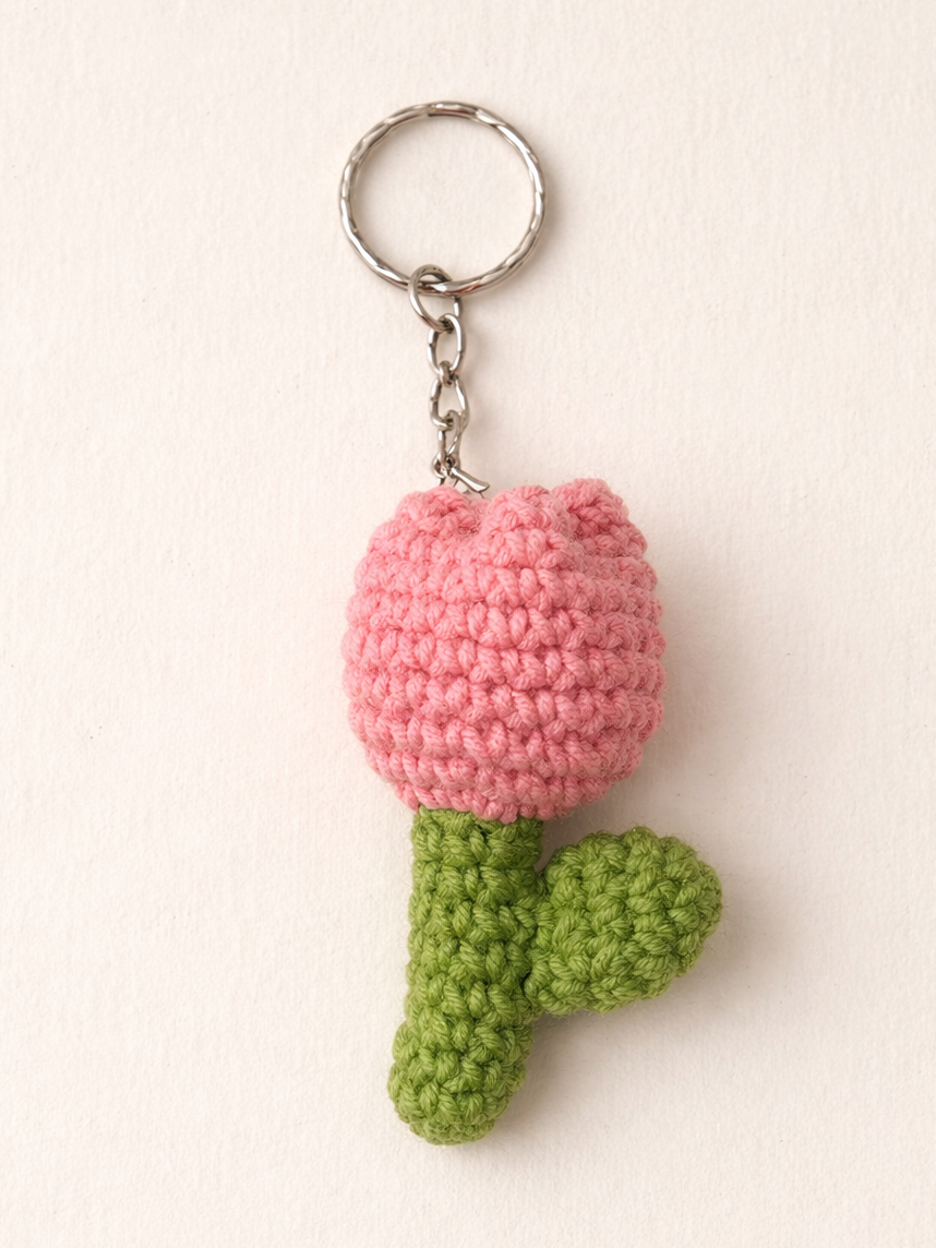Вязаный брелок Цилинская «Тюльпан», розовый, 7 см