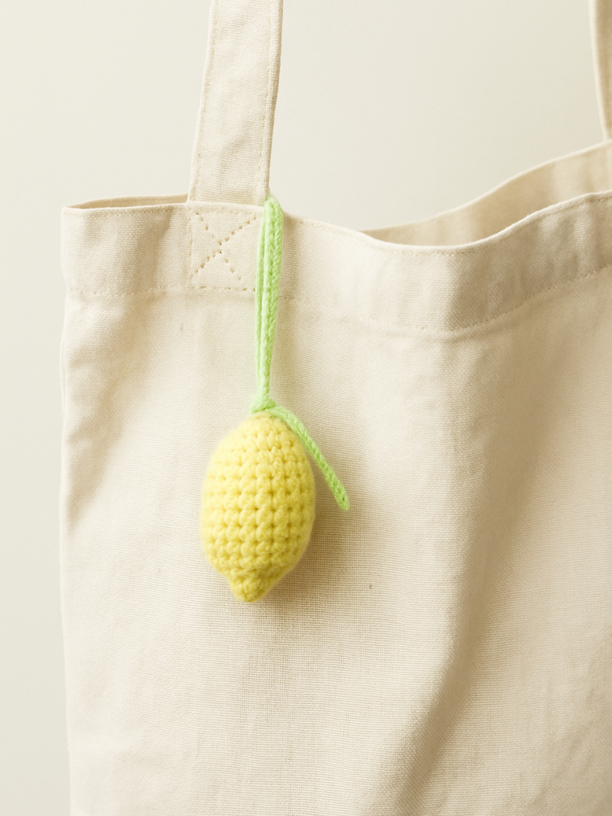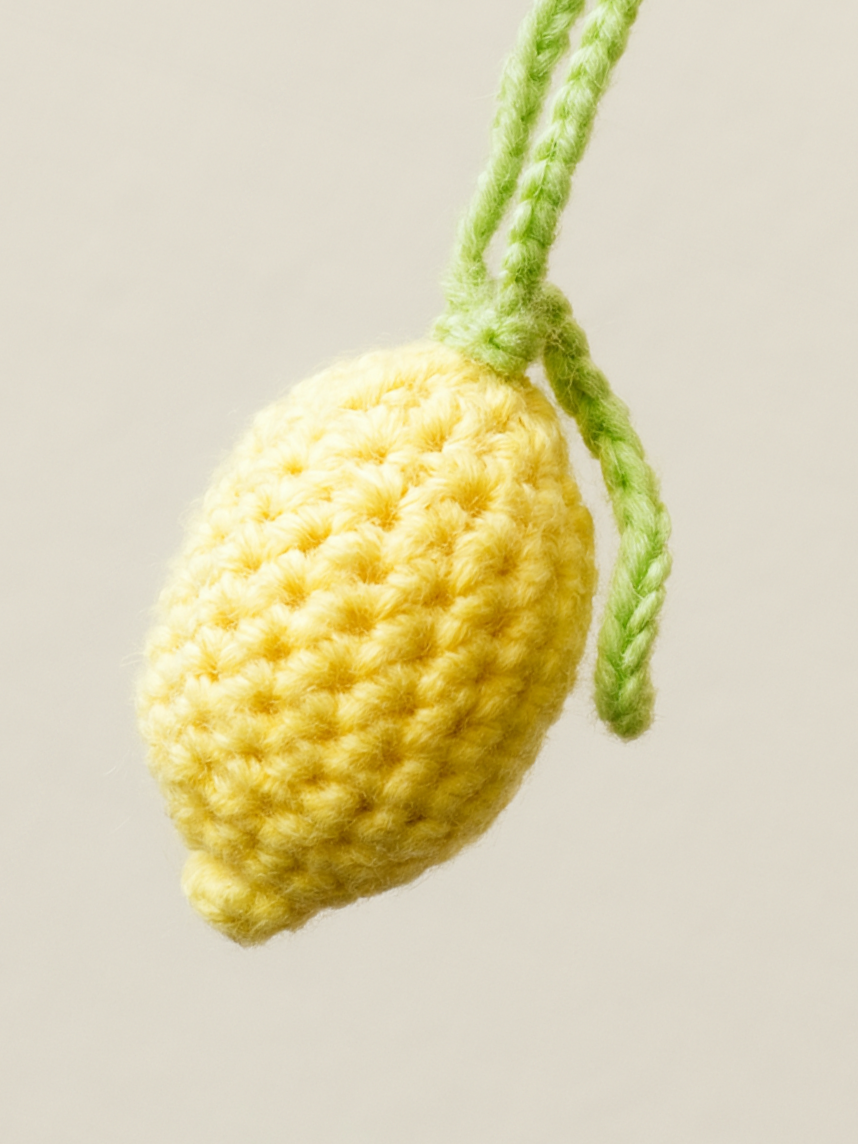 Вязаный брелок в виде лимончика от бренда svyazochka, размер 5 см, выполнен из хлопковой пряжи.