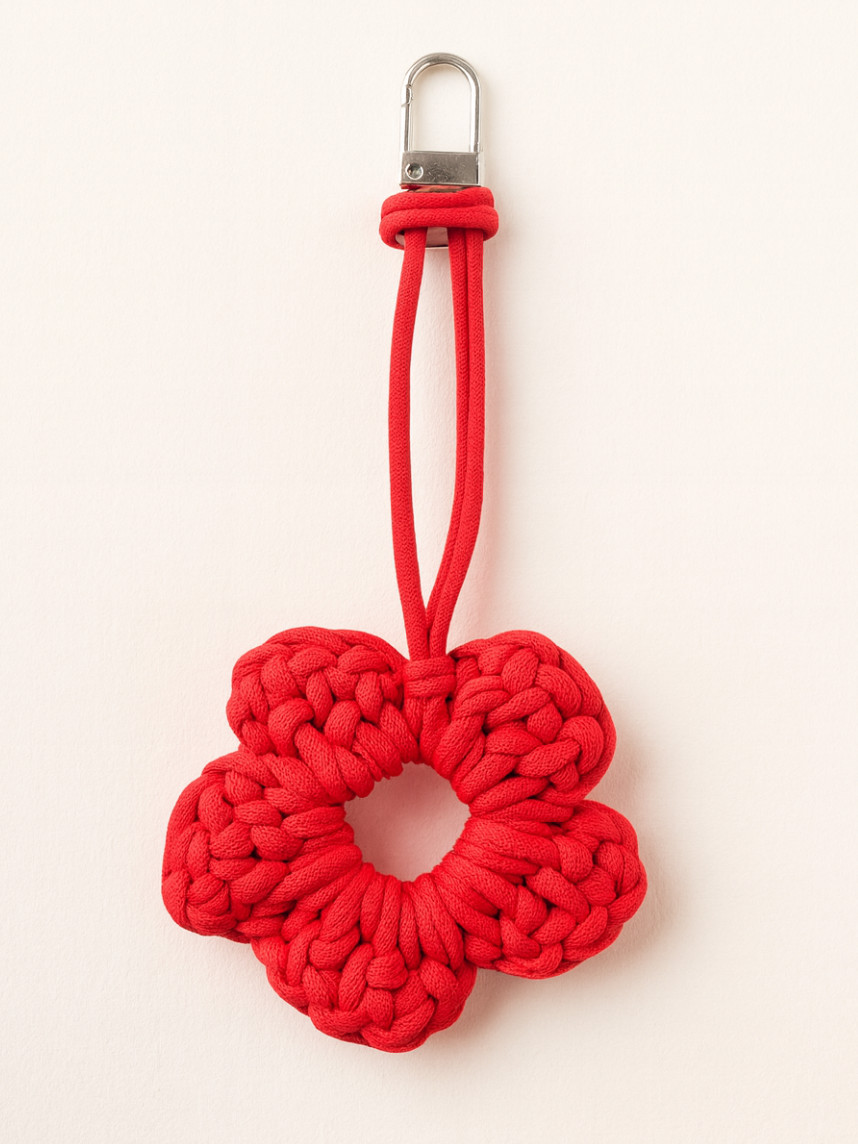 Вязаный брелок в виде цветочка от бренда novika выполнен из хлопкового шнура.