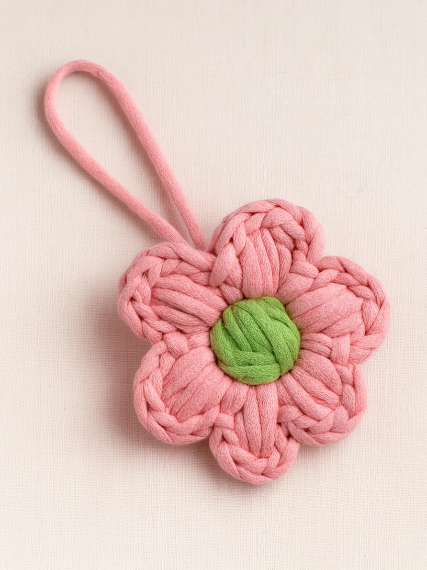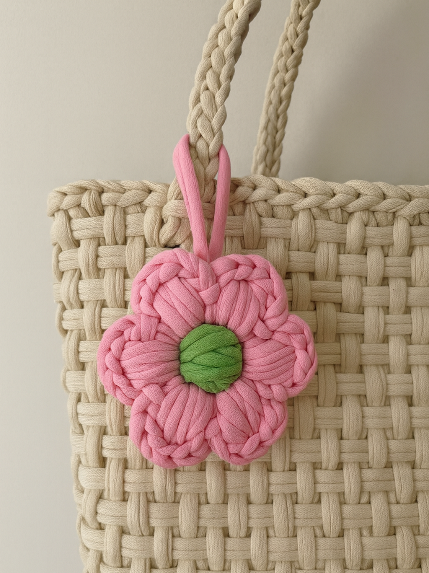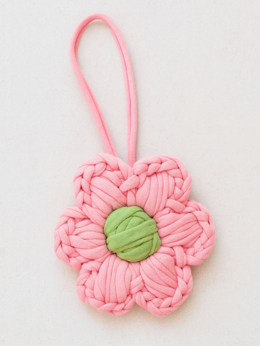 Вязаный обвес в виде цветочка от бренда novika выполнен из хлопкового шнура.