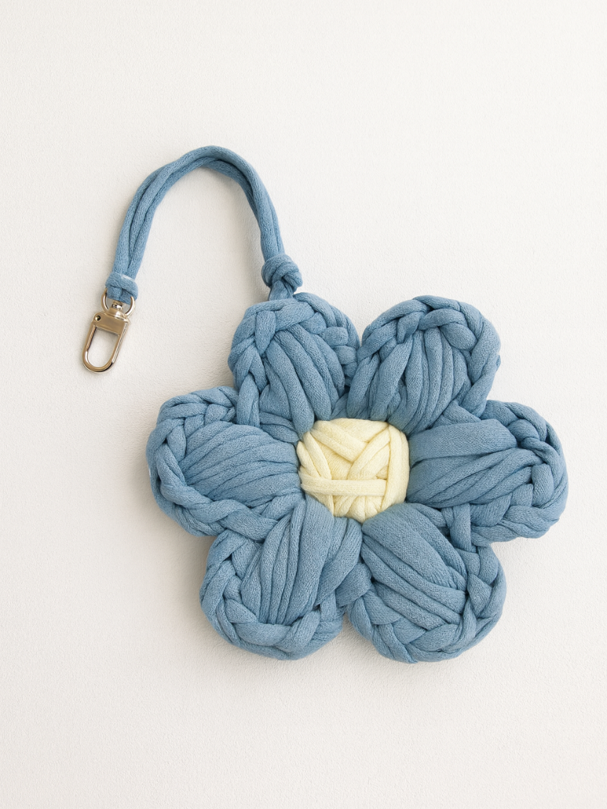 Вязаный обвес в виде цветочка от бренда novika выполнен из хлопкового шнура.