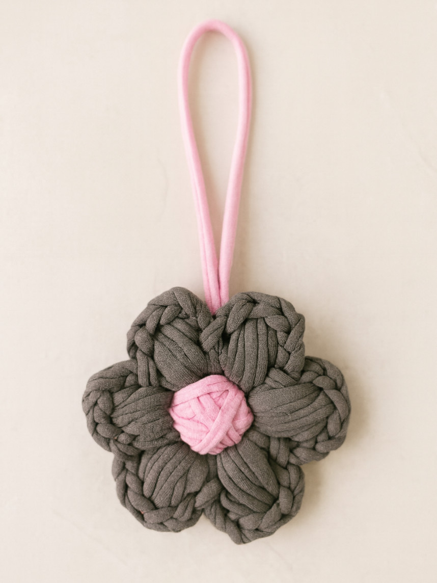 Вязаный обвес в виде цветочка от бренда novika выполнен из хлопкового шнура.