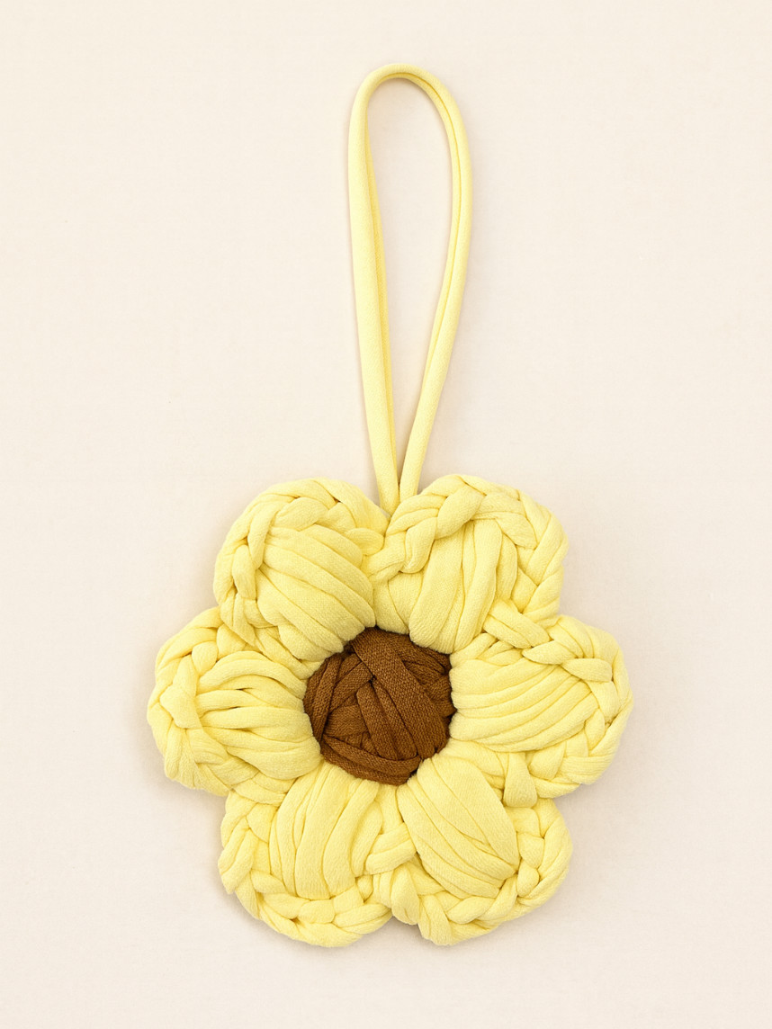 Вязаный обвес в виде цветочка от бренда novika выполнен из хлопкового шнура.