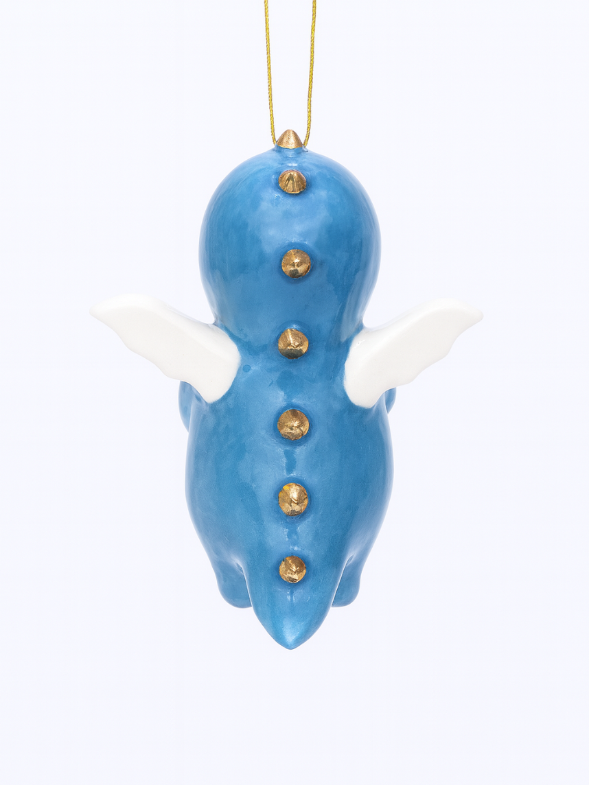 Ёлочная игрушка из фарфора «Малыш в костюме динозаврика», голубой, 10 см