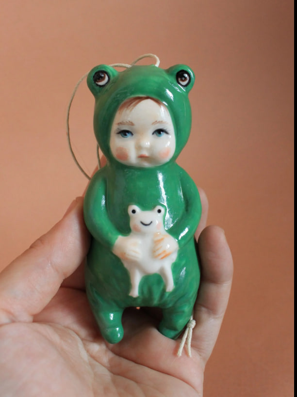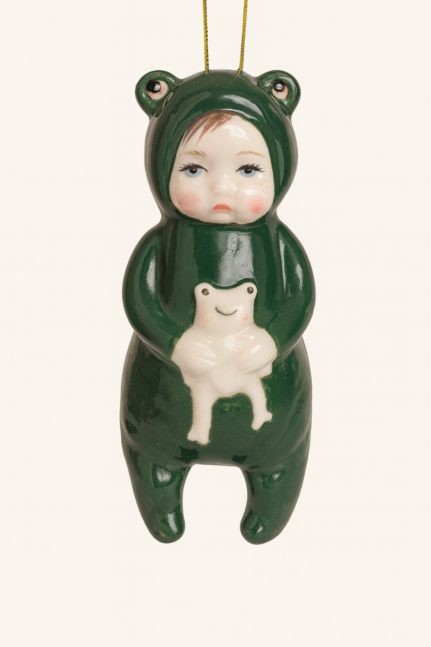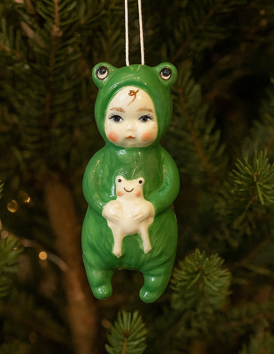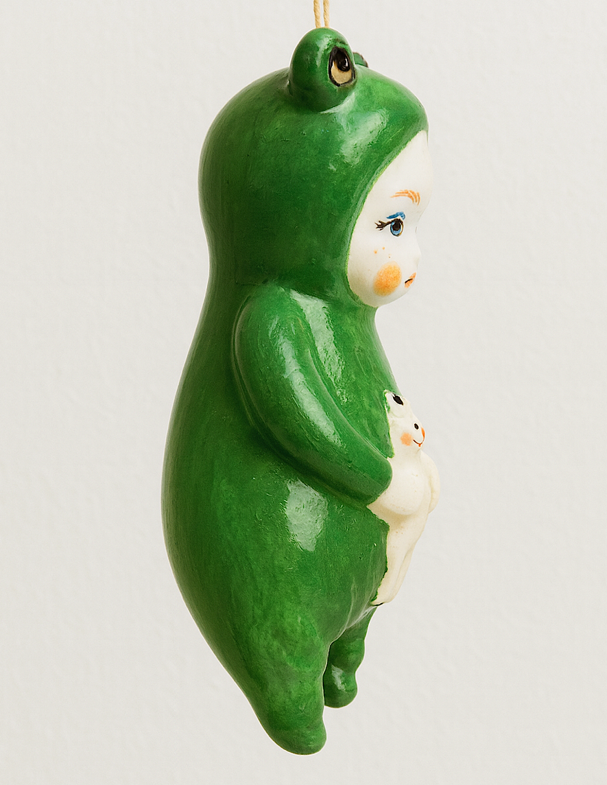 Ёлочная игрушка из фарфора «Малыш в костюме лягушонка», 10 см