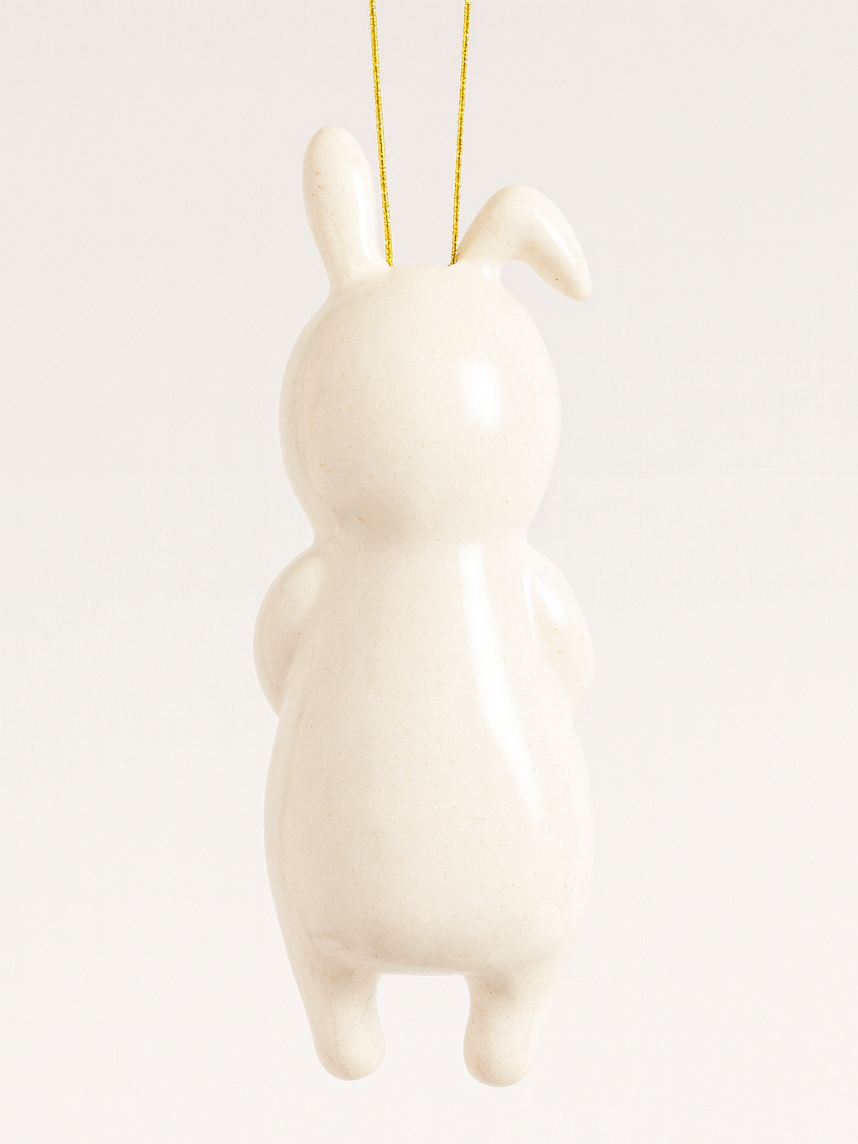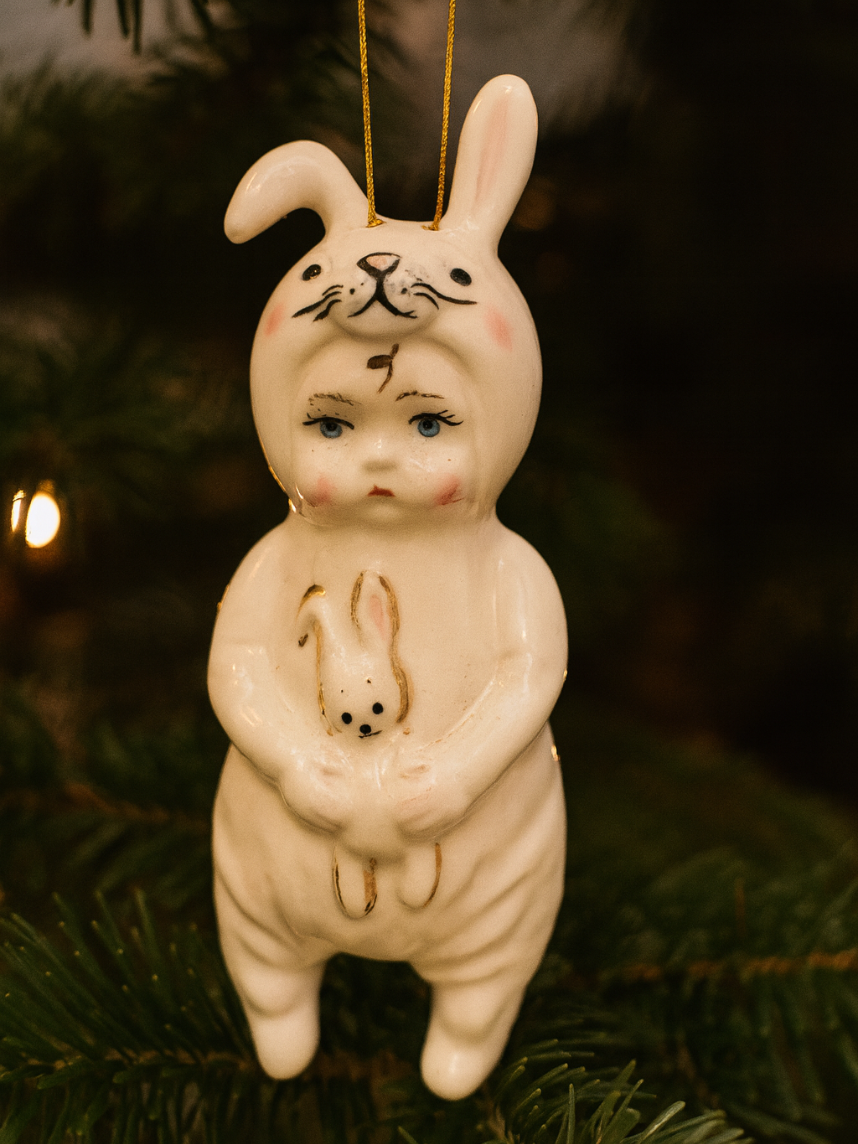Ёлочная игрушка из фарфора «Малыш в костюме зайчика», белый, 12 см