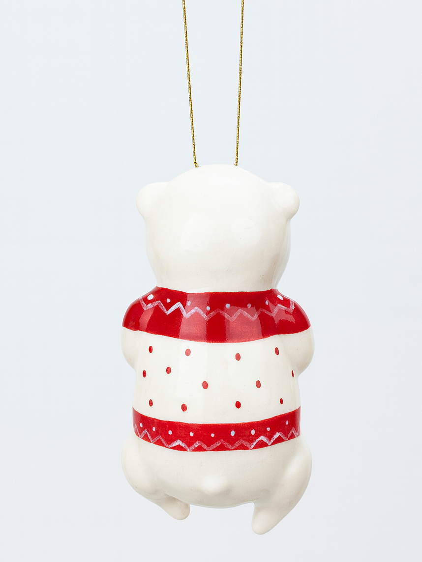 Ёлочная игрушка из фарфора «Медведь в новогоднем свитере», 12 см