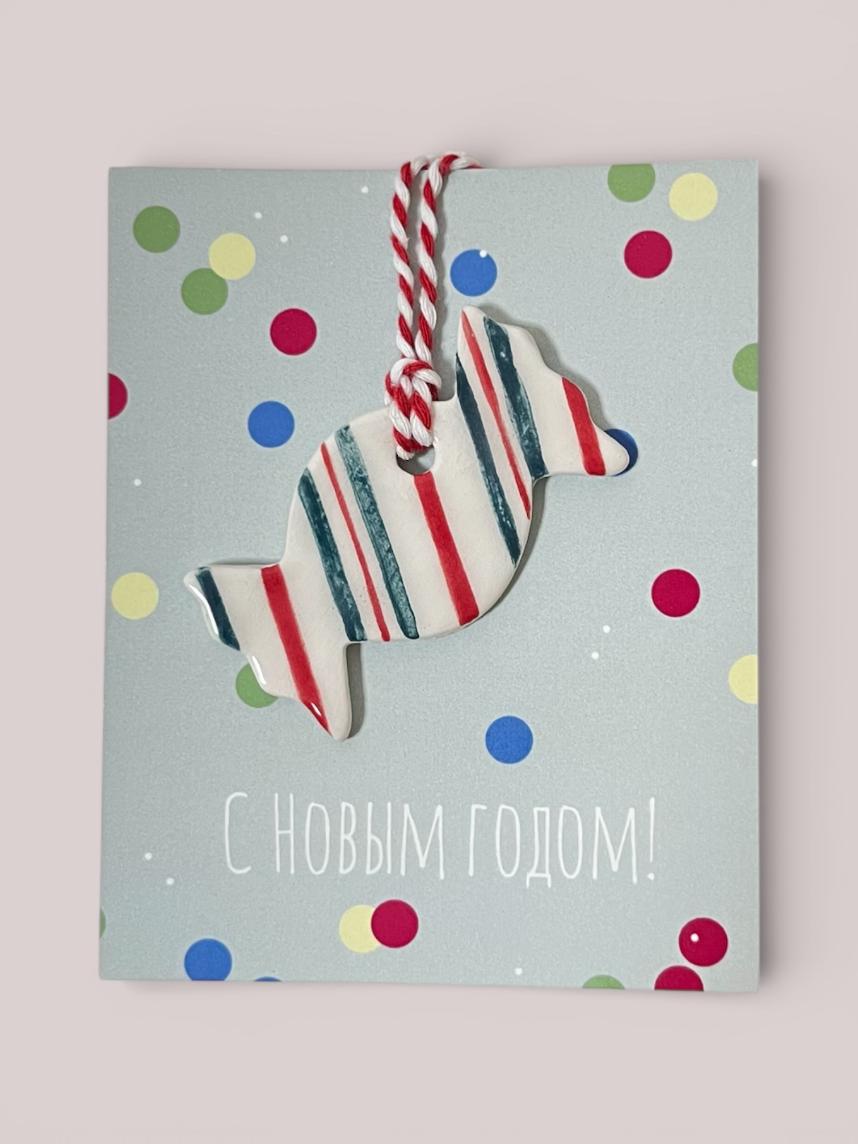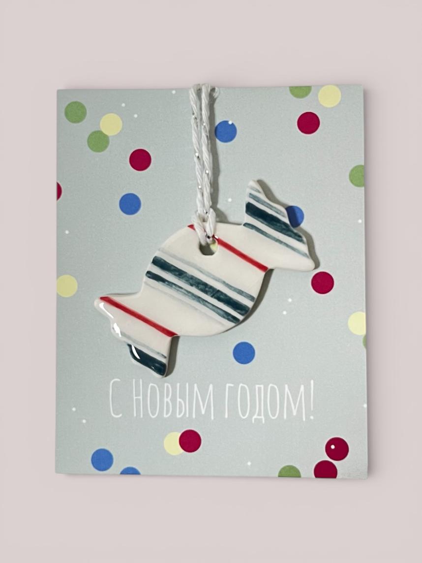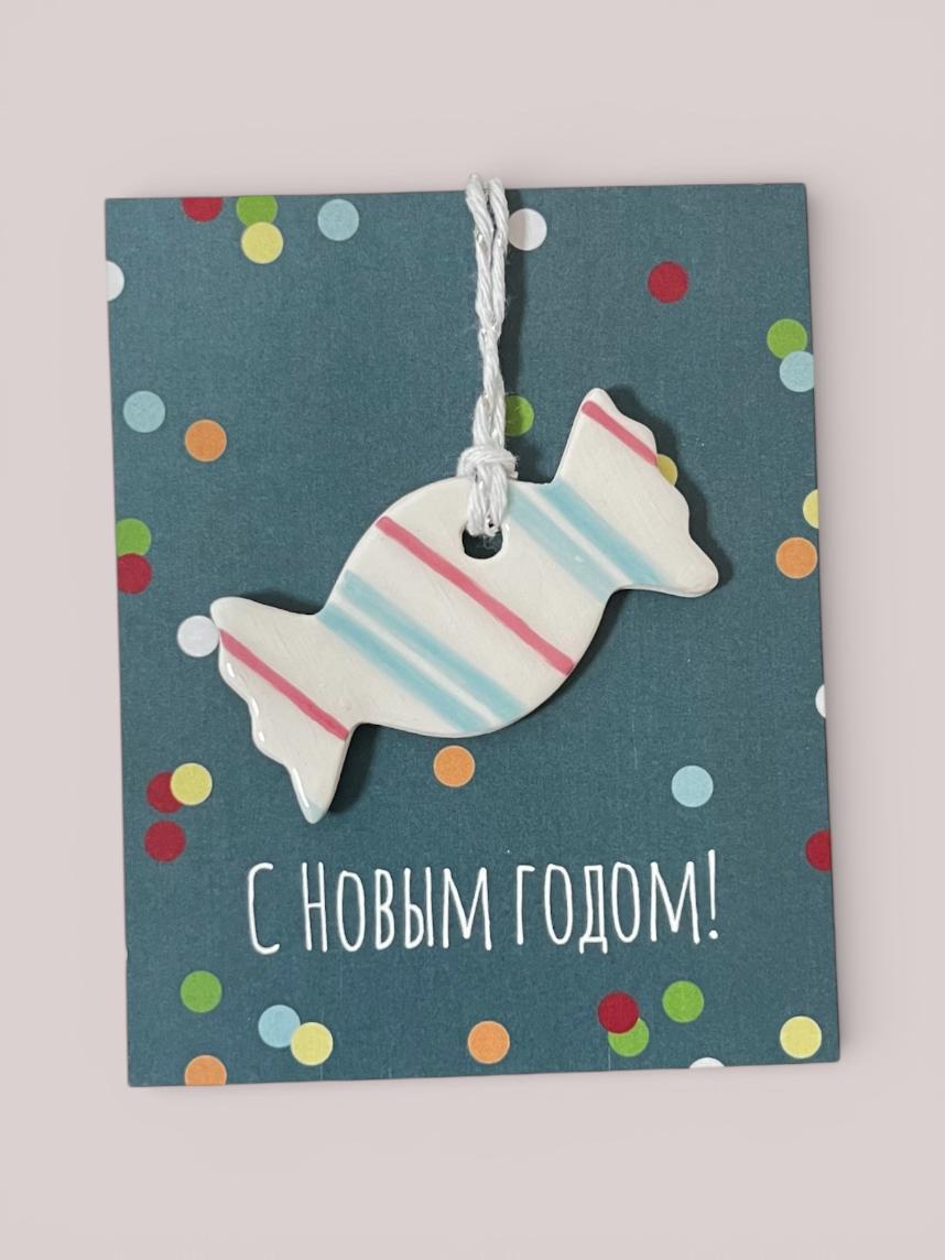 В нашем магазине можно купить оригинальный подарок на Новый год: ёлочная игрушка в виде конфеты из керамики - это прекрасный выбор для тех, кто хочет украсить свою ёлку и создать уютную атмосферу в новогоднюю ночь.
