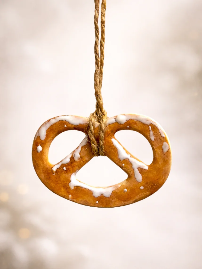В нашем магазине можно купить оригинальный подарок на Новый год: ёлочная игрушка в виде кренделя из керамики - это прекрасный выбор для тех, кто хочет украсить свою ёлку и создать уютную атмосферу в новогоднюю ночь.