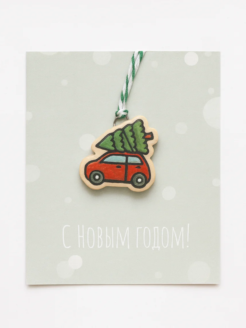 В нашем магазине можно купить оригинальный подарок на Новый год: керамическая ёлочная игрушка в виде машинки, везущей ёлочку на Новый год - это прекрасный выбор для тех, кто хочет украсить свою ёлку и создать уютную атмосферу в новогоднюю ночь.