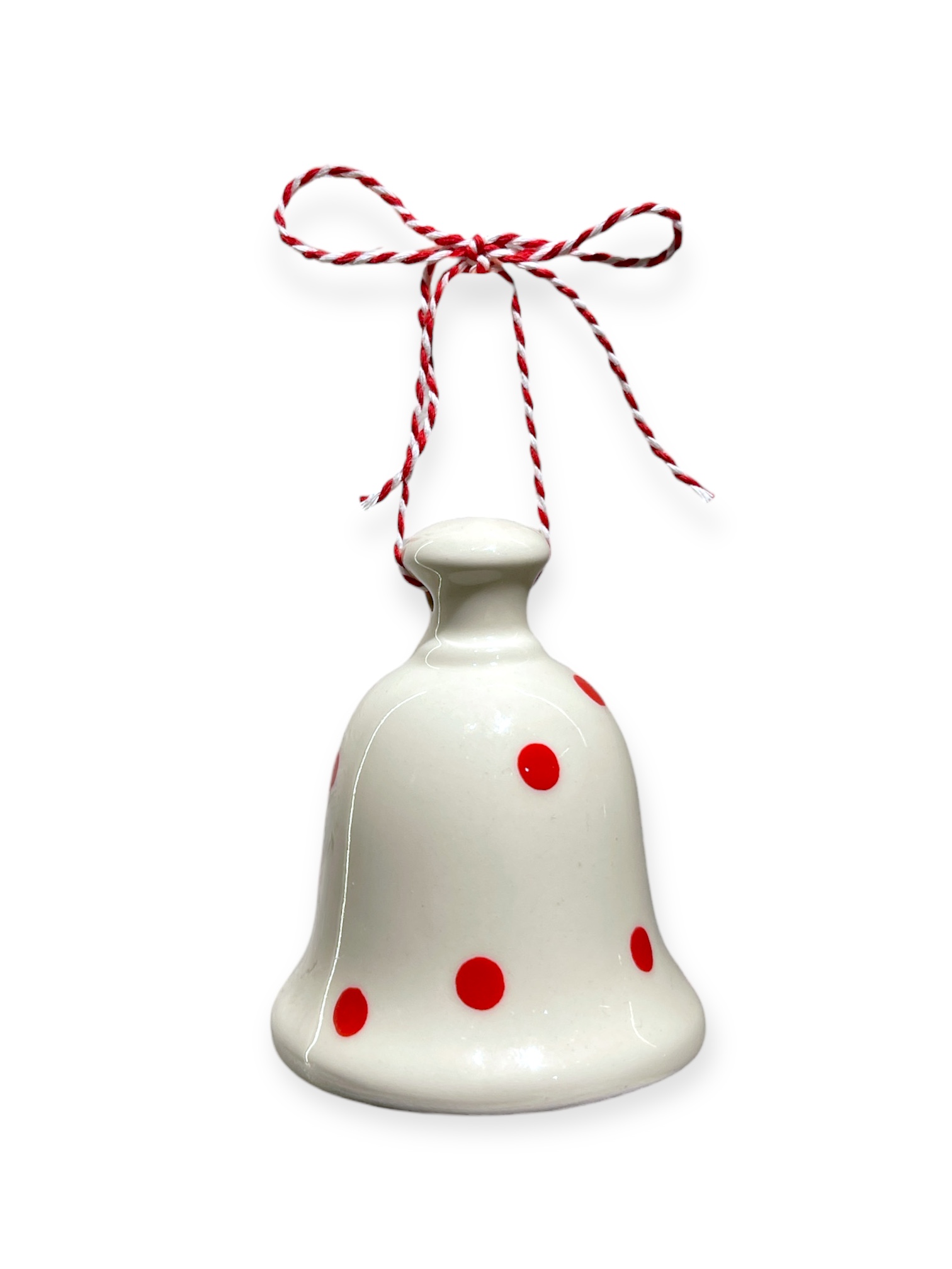 Ёлочная игрушка колокольчик «Красные точки», керамика
