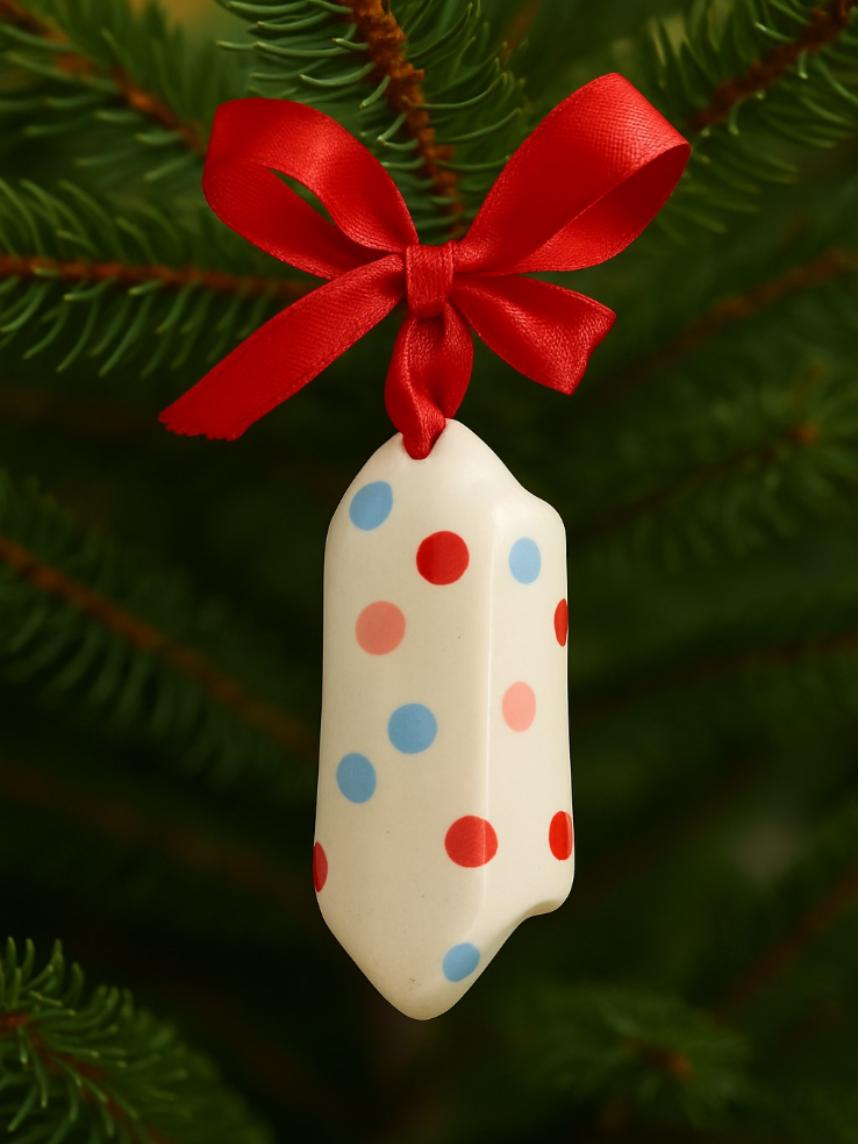 В нашем магазине можно купить оригинальный подарок на Новый год: ёлочная игрушка в виде конфеты из керамики - это прекрасный выбор для тех, кто хочет украсить свою ёлку и создать уютную атмосферу в новогоднюю ночь.