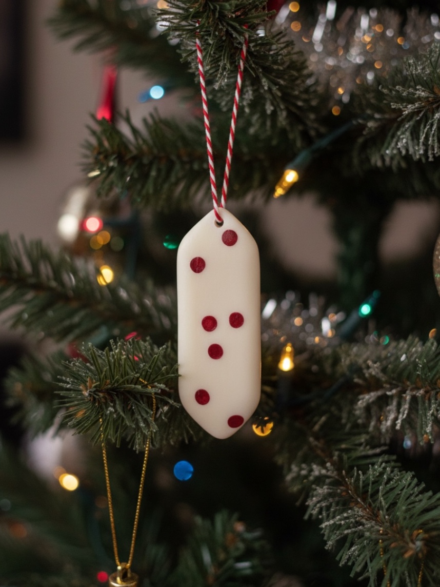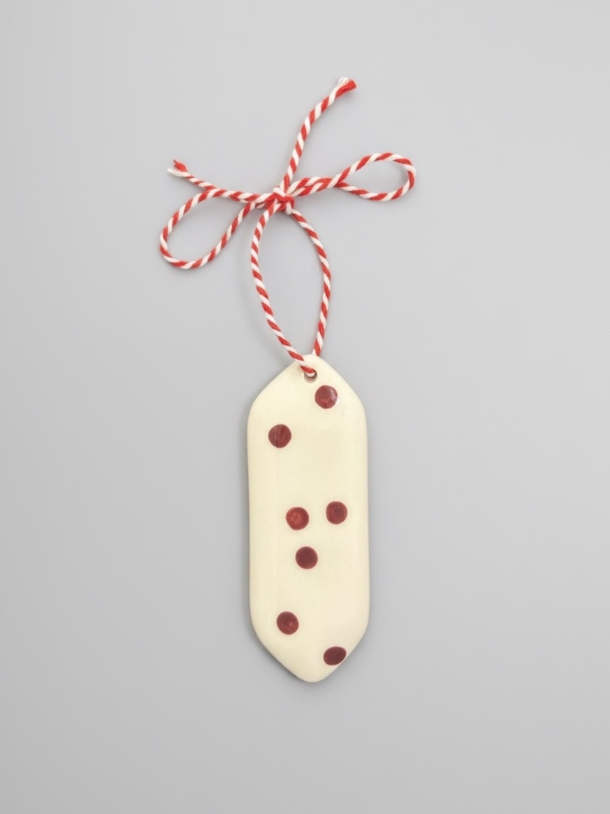 Ёлочная игрушка конфета «Коричневые точки», белая керамика