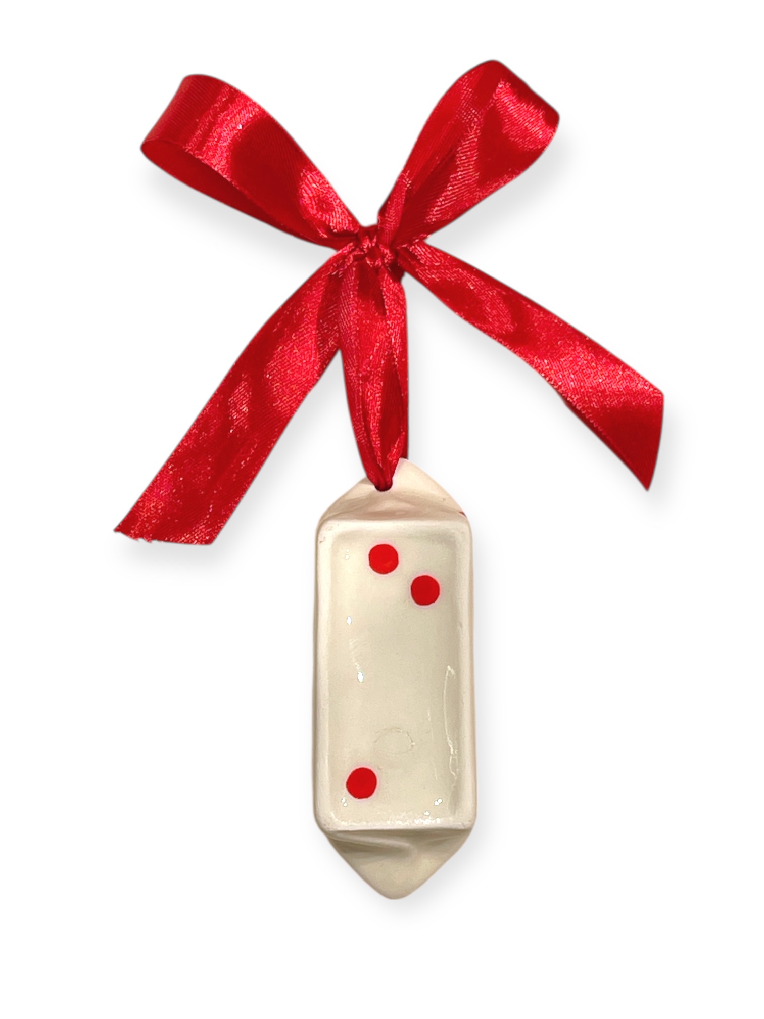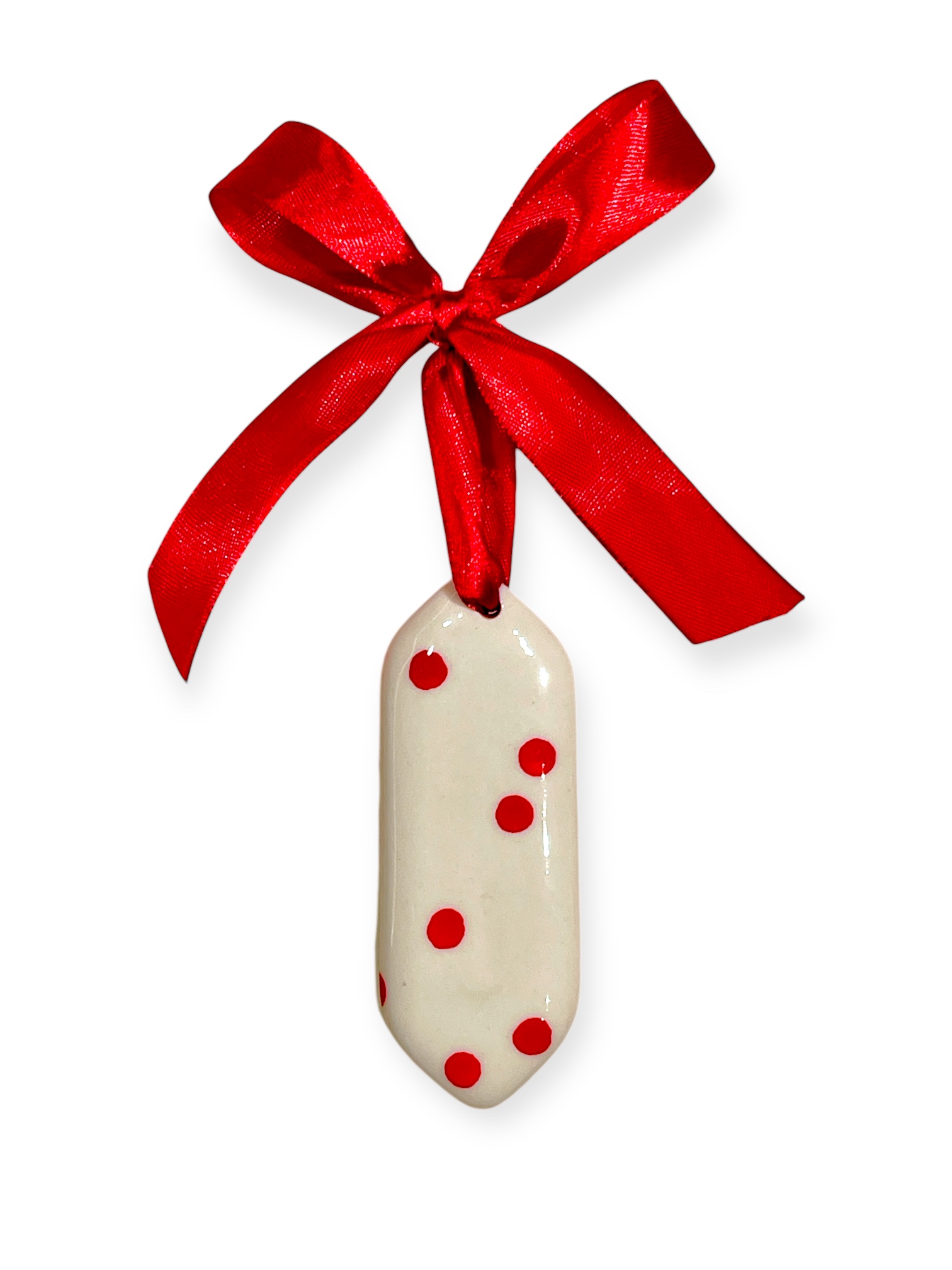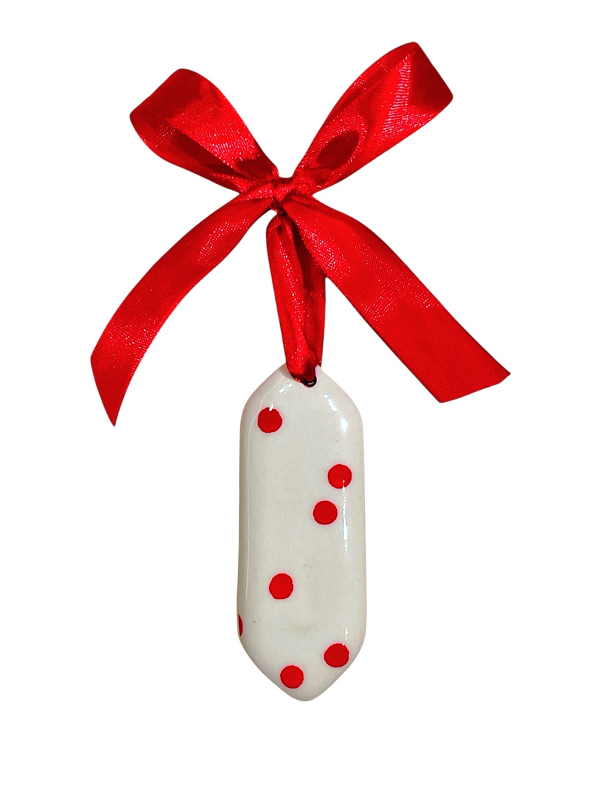 Ёлочная игрушка конфета «Красные точки», белая керамика