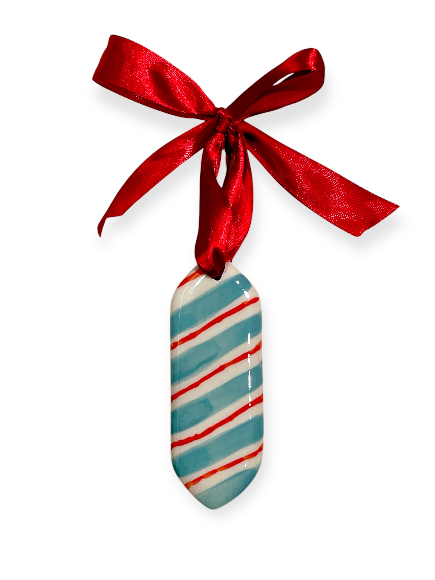 Ёлочная игрушка конфета «Полоски» красно-голубая, белая керамика