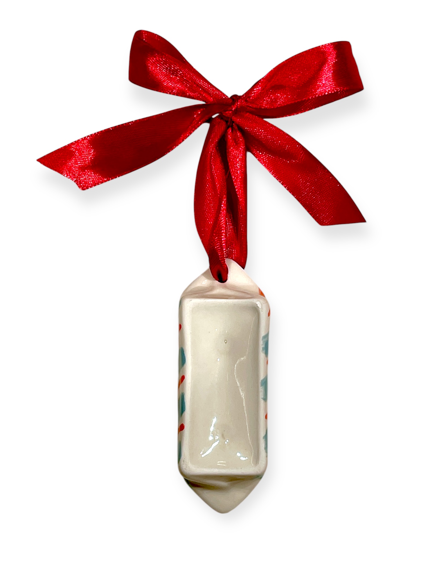 В нашем магазине можно купить оригинальный подарок на Новый год: ёлочная игрушка в виде конфеты из керамики - это прекрасный выбор для тех, кто хочет украсить свою ёлку и создать уютную атмосферу в новогоднюю ночь.