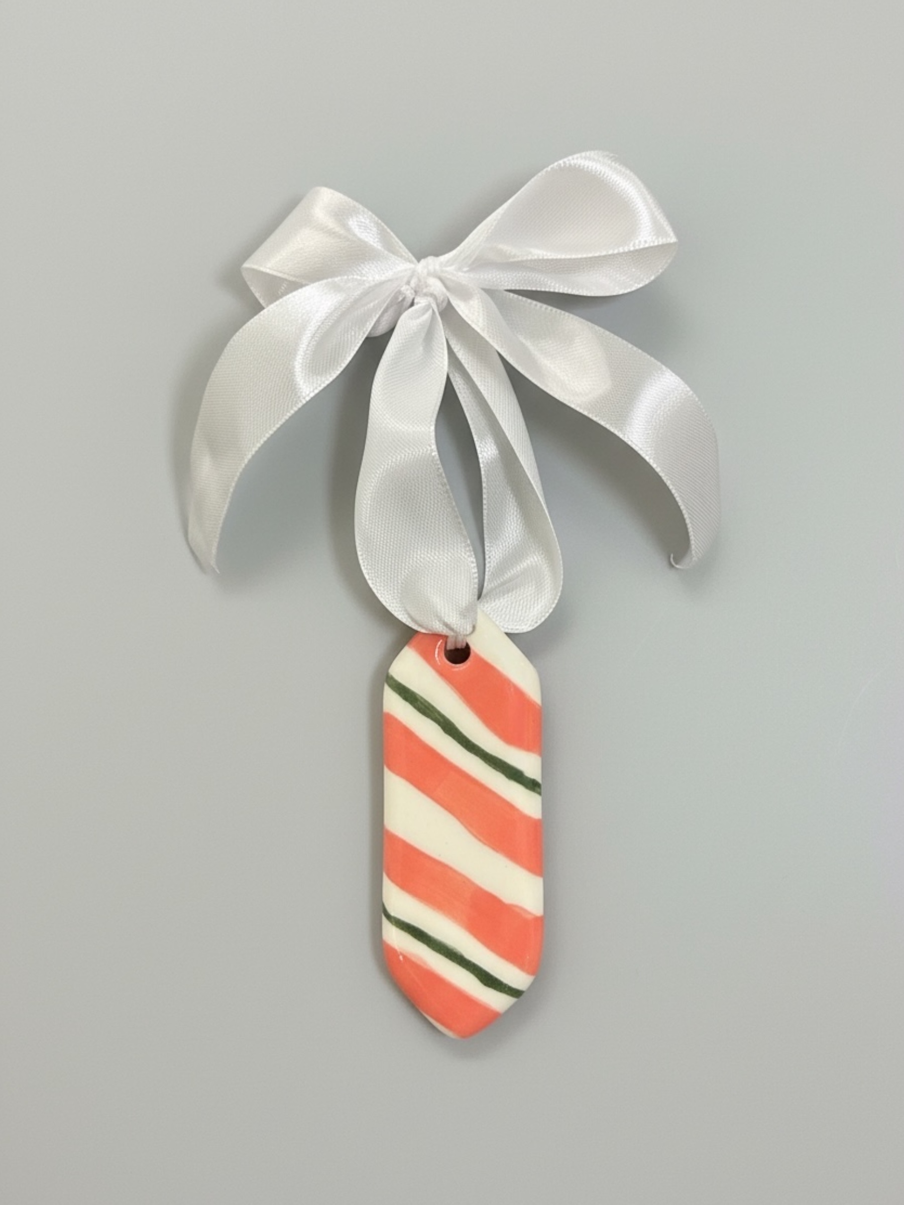 Ёлочная игрушка конфета «Полоски» розово-зеленая, белая керамика