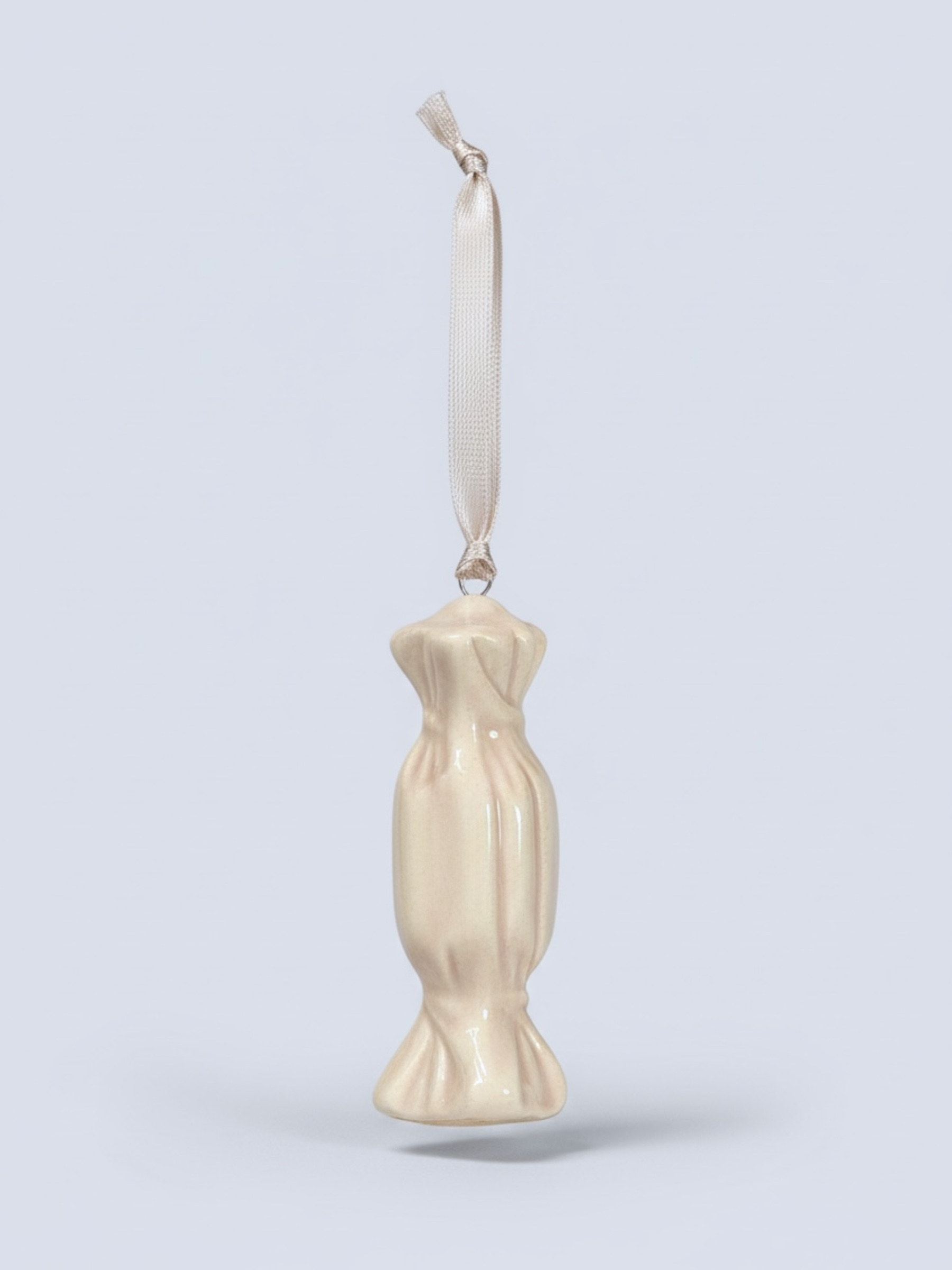 Ёлочная игрушка в виде конфеты «Карамелька» выполнена из керамики - это прекрасный выбор для тех, кто хочет украсить свою ёлку и создать уютную атмосферу в новогоднюю ночь.