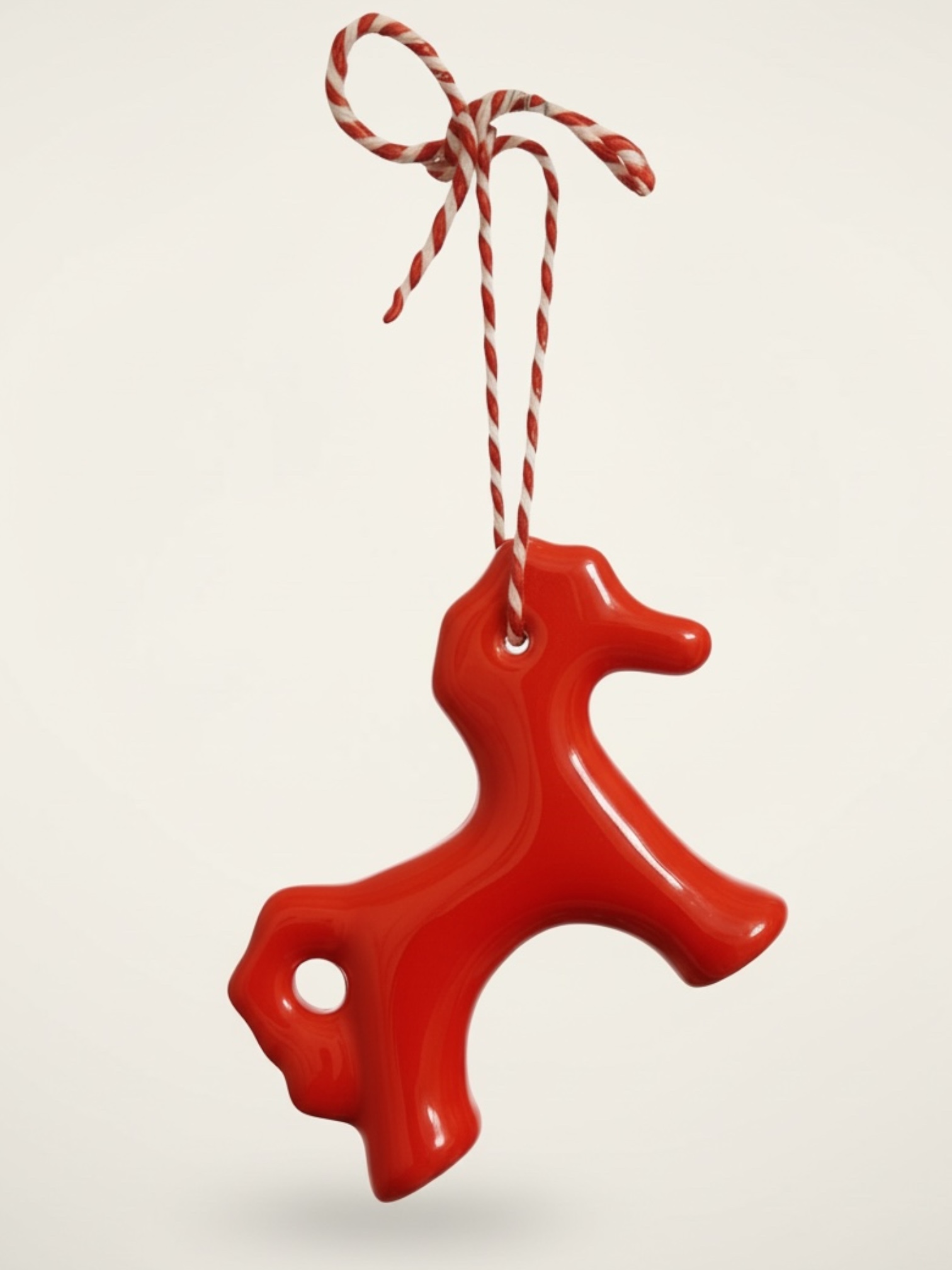 Ёлочная игрушка ручной работы «Лошадка 3д» сделана из керамики.