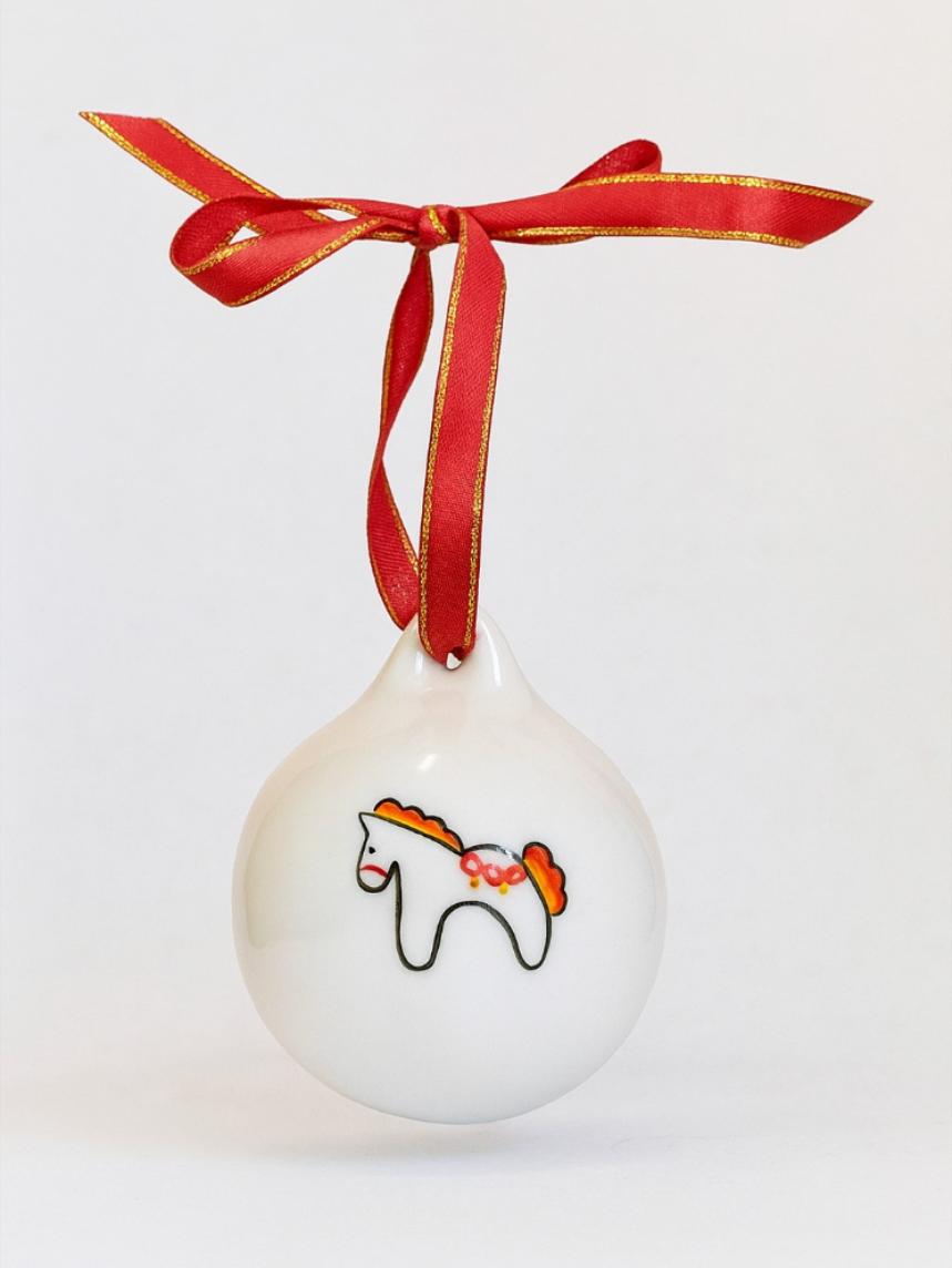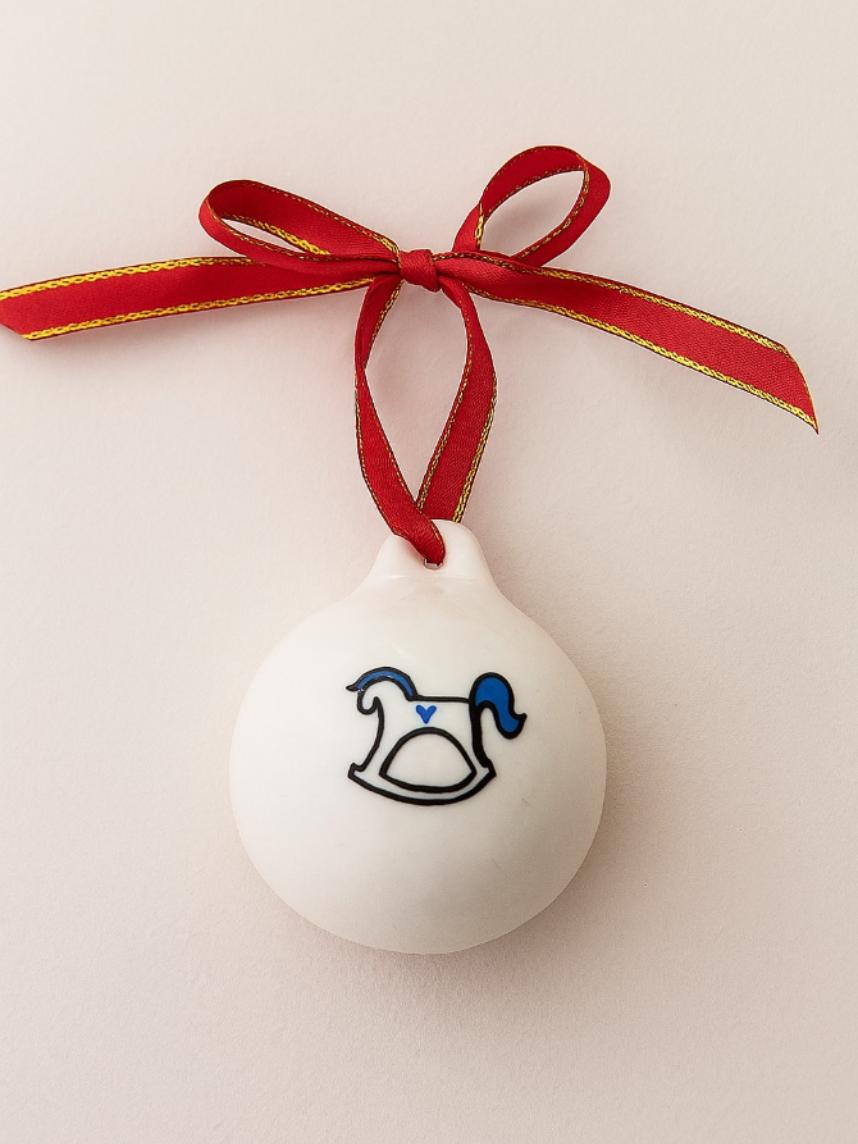 Ёлочная игрушка шар расписной «Лошадка-Качалка», фарфор, 7 см