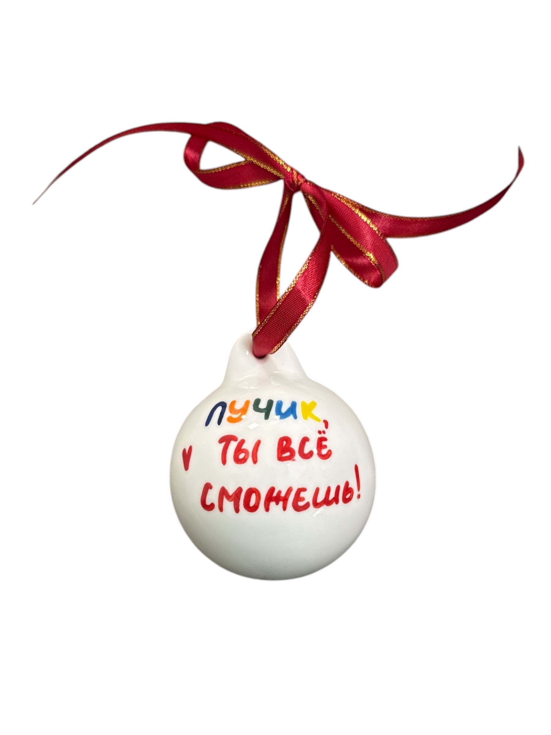 Ёлочная игрушка шар расписной «Лучик, Ты Всё Сможешь», фарфор, 7 см