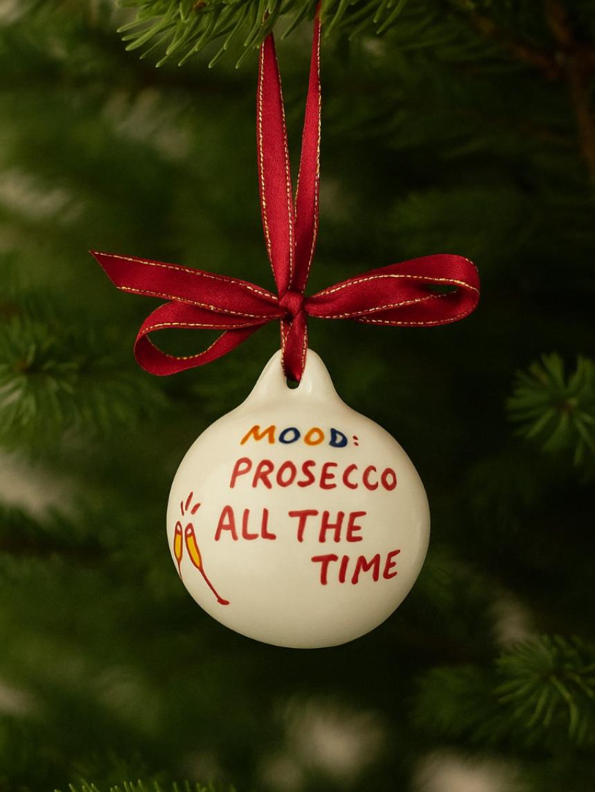 Ёлочная игрушка шар расписной «Mood Prosecco», фарфор, 7 см