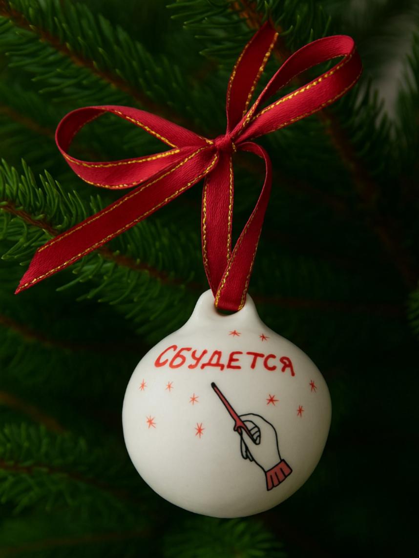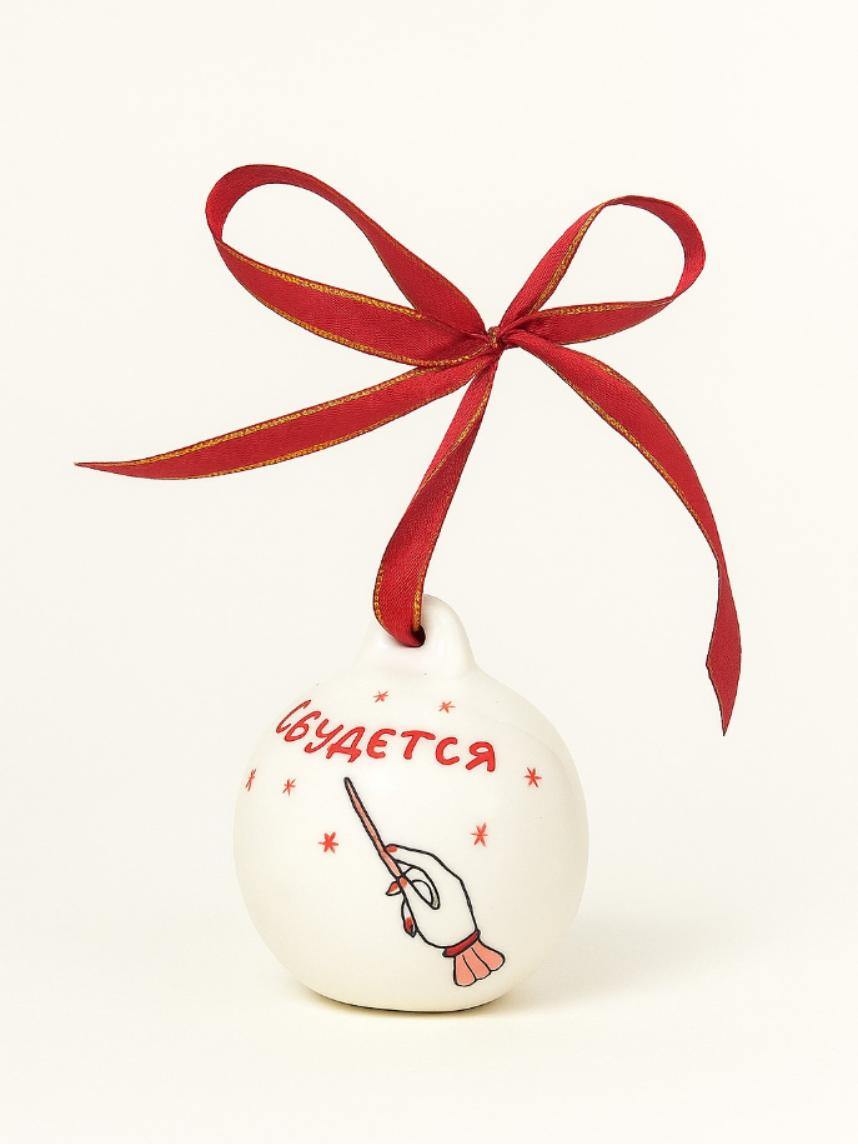 Ёлочная игрушка шар расписной «Сбудется», фарфор, 7 см