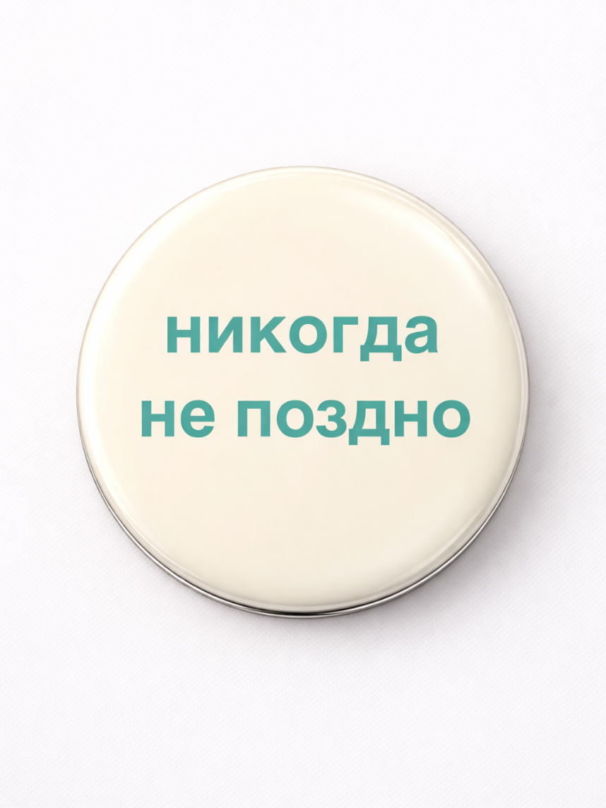 Закатной значок «Никогда не поздно», металл, 25 мм