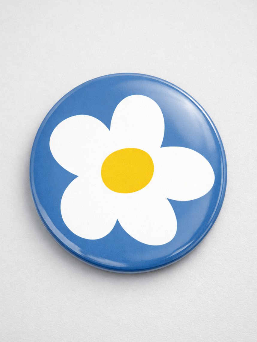 Круглый металлический значок на булавке с принтом ромашки станет прекрасным дополнением к вашей коллекции аксессуаров или небольшим подарком другу или подруге.